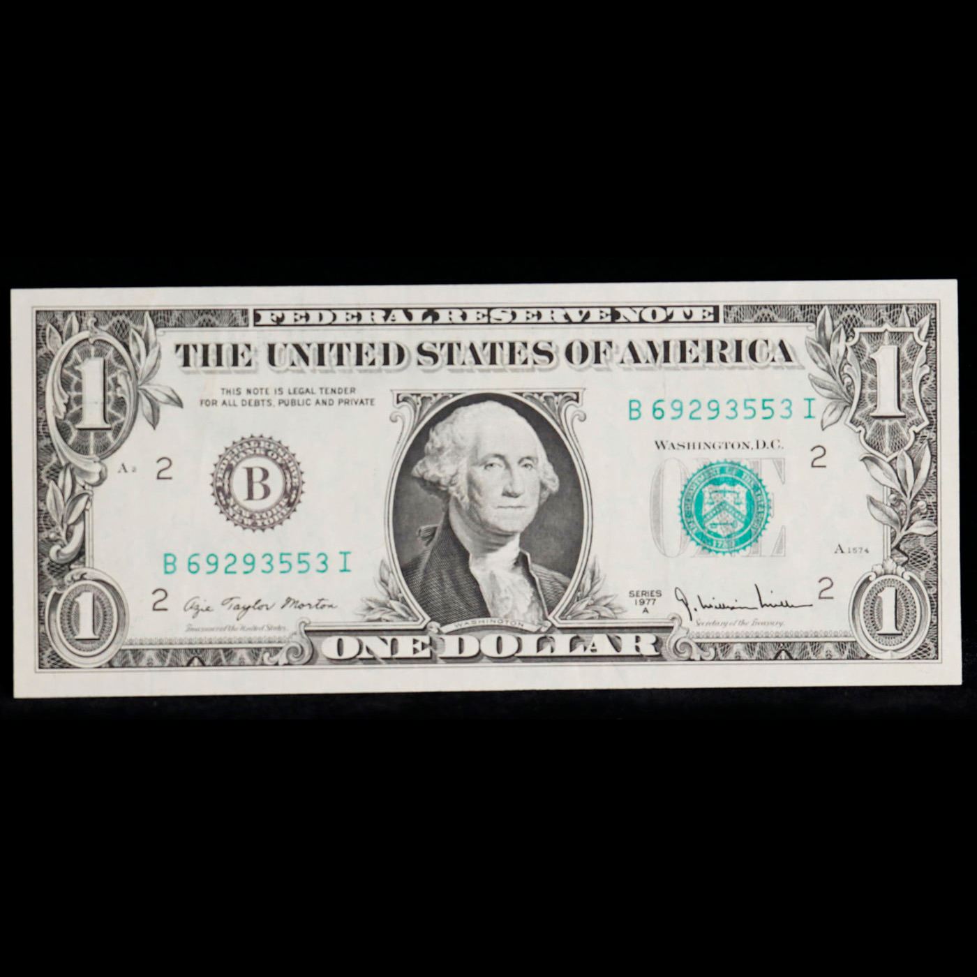 1977A $1 Green Seal Federal Reserve Note Grades Choice AU/BU Slider.