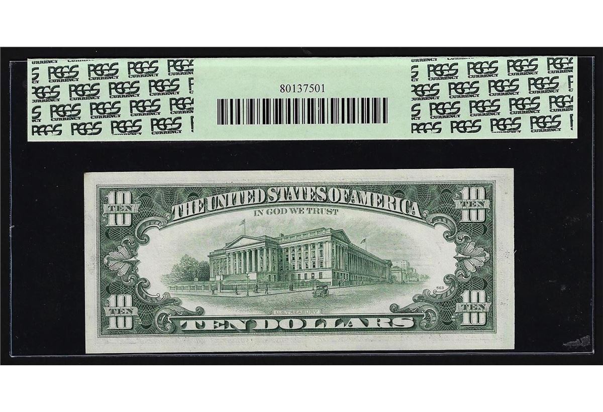 1977A $10 Federal Reserve Note ERROR Ink Smear PCGS Gem New 65PPQ