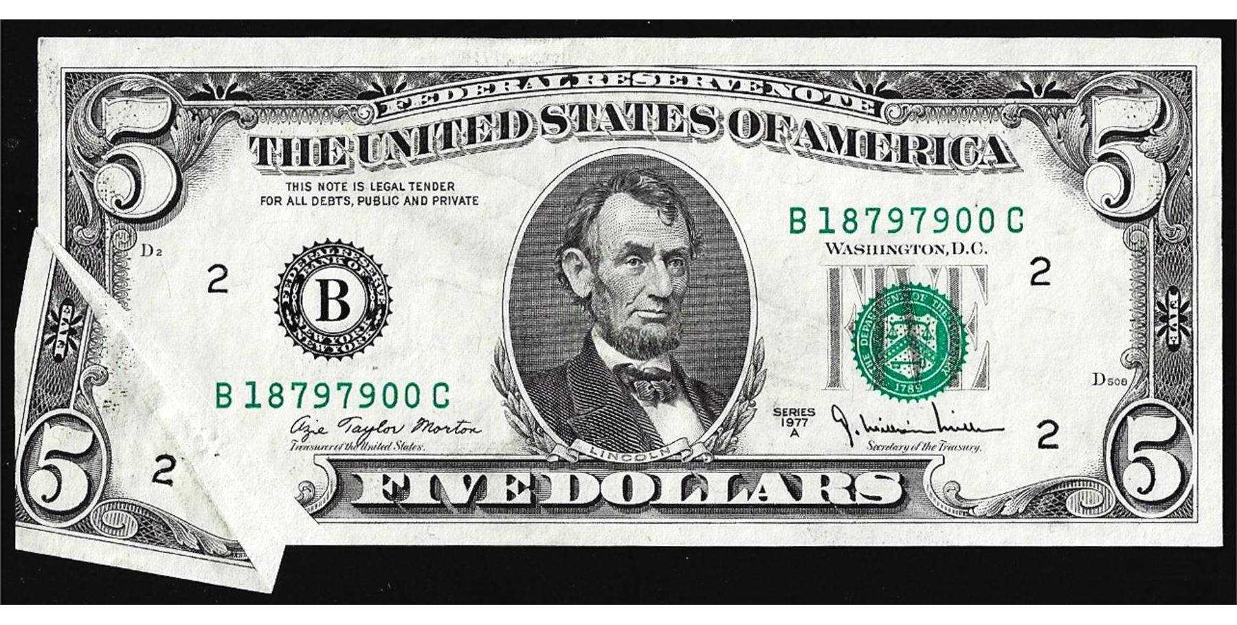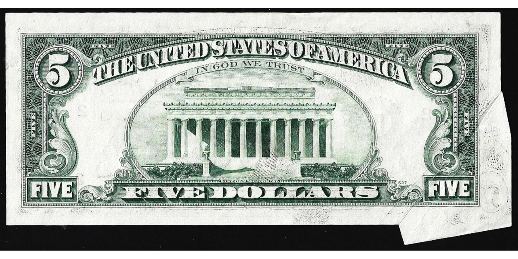 One 1977A $5 Federal Reserve Note New York Gutter fold Error.