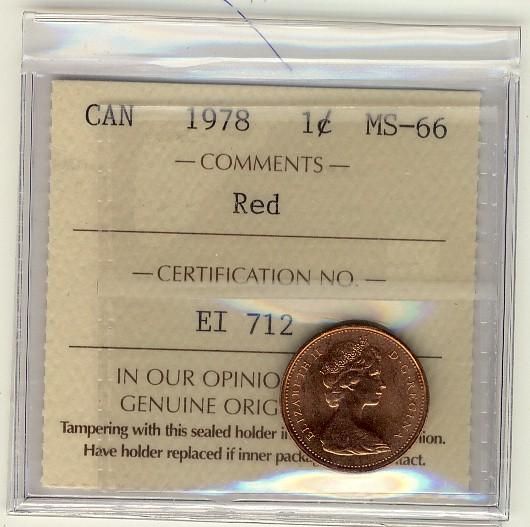 1978 1¢ ICCS MS66 Full Red, A superb GEM example.