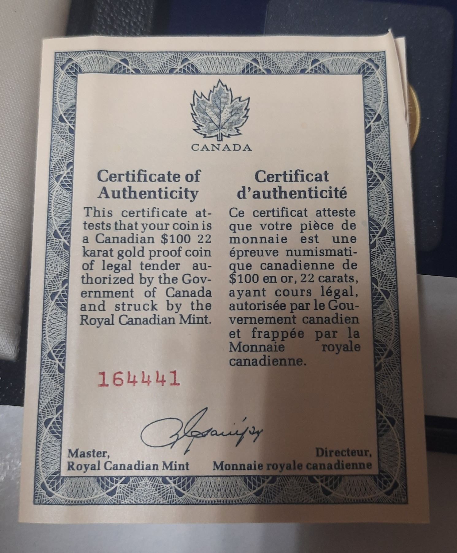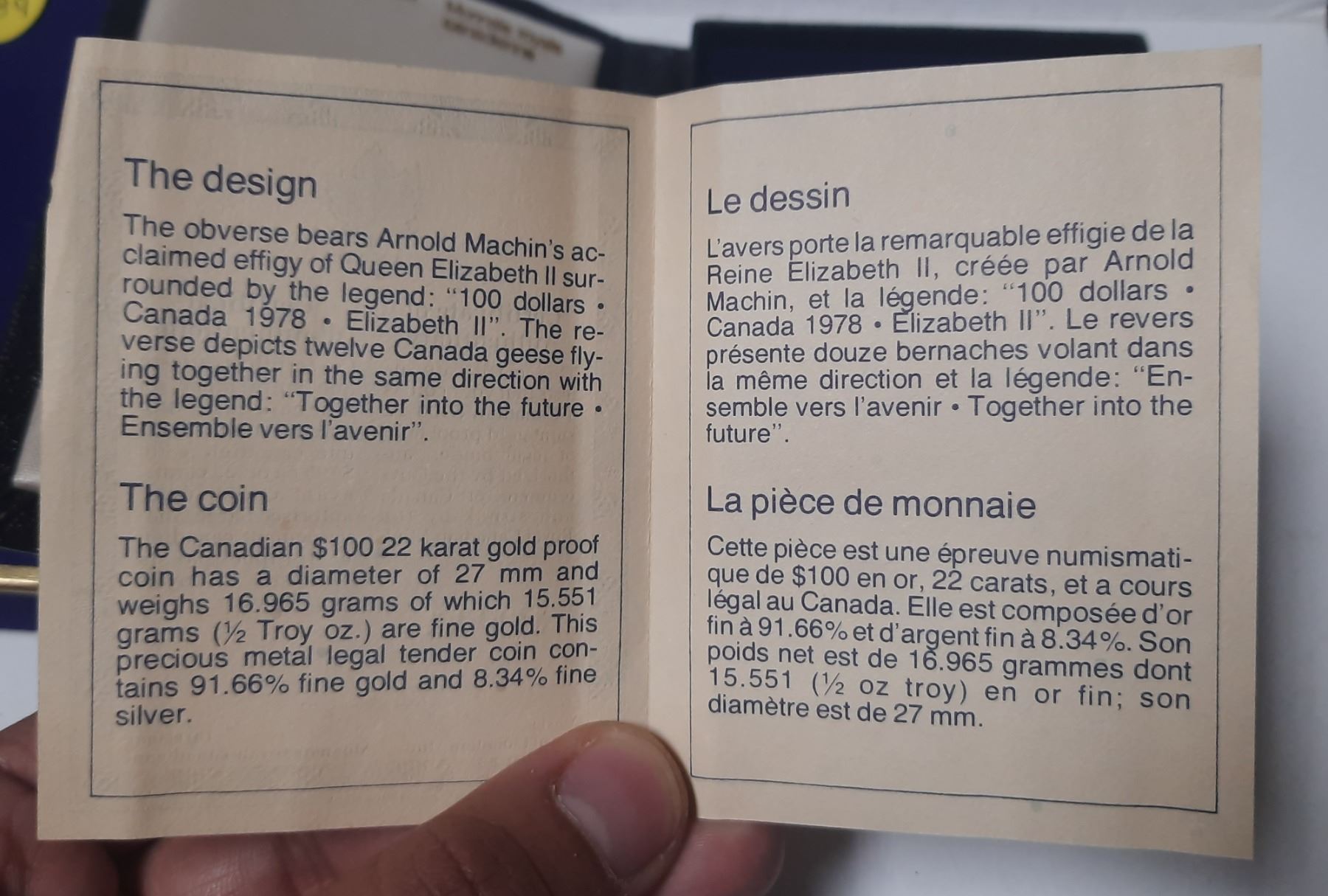 1978  $100.00, 22 Karat Gold Proof Coin. Certificate of Authenticity included.