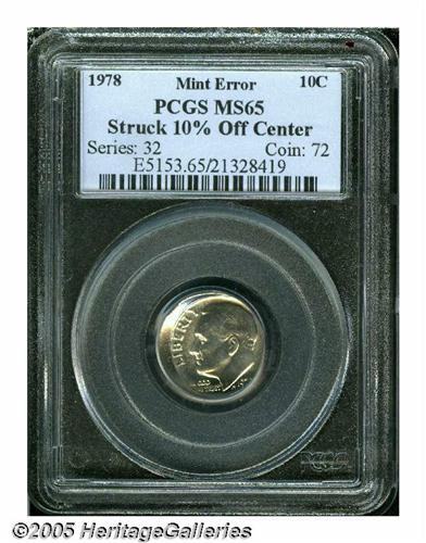 <B>1978<10C> Roosevelt Dime--Struck 10% Off Center--MS65 PCGS.</B></I> Struck moderately off center toward 3 o'clock, OF AMERICA and the final digit in the date are partly off the flan. Lustrous and lightly toned.
