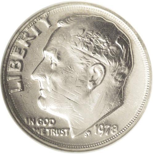 <B>1978<10C> Roosevelt Dime--Struck on a Dominican Republic Ten Centavo--MS66 NGC.</B></I> The 8 in the date from the ten centavos (KM-50) strike is evident between the ME in AMERICA. The Dominican Republic coat of arms is extensively perceptible throughout Roosevelt's portrait. This satiny and untoned example is well centered and exhibits the full design of the overtype.
