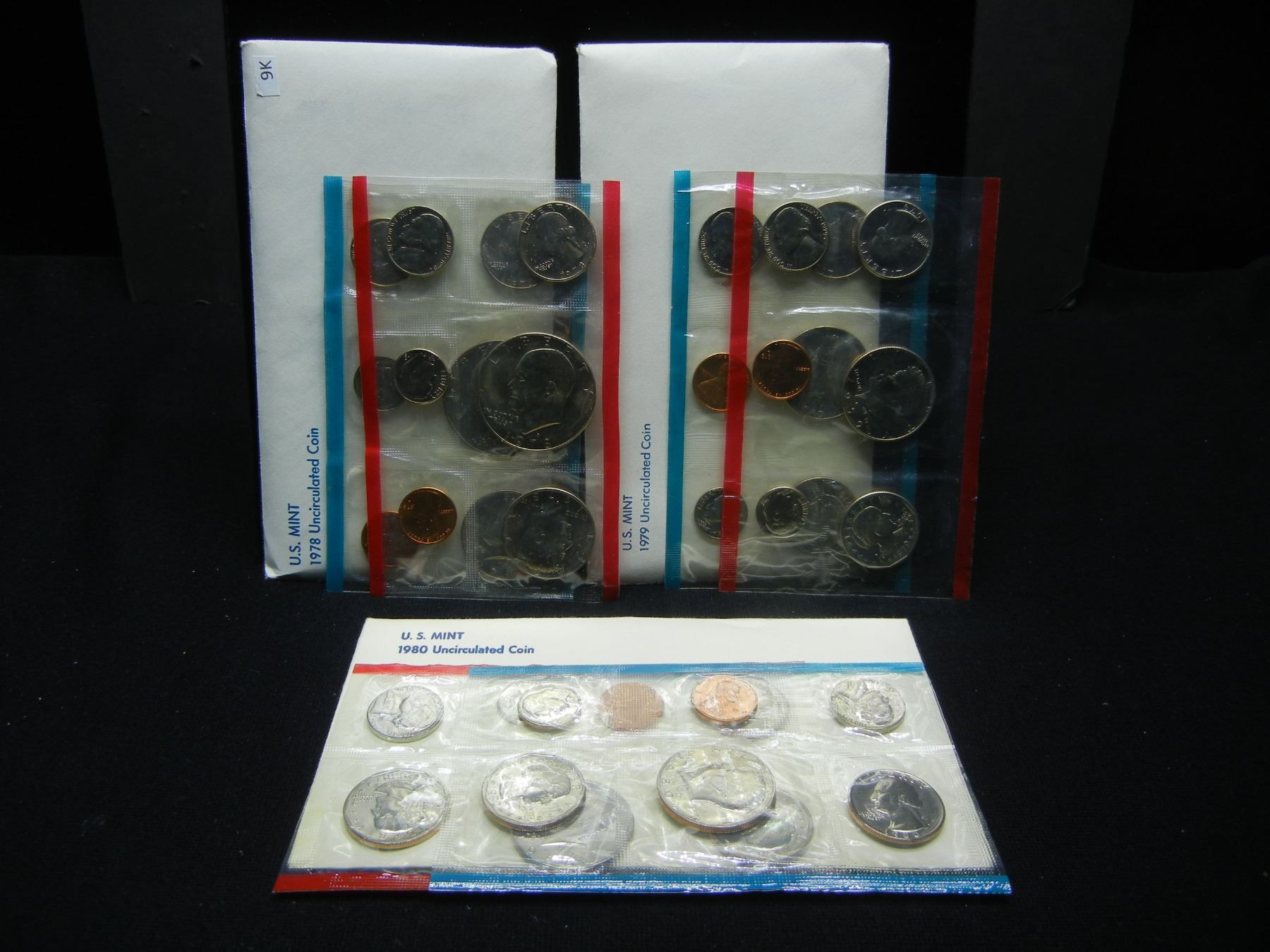 1978 1979 1980 United States Mint Sets With Original Government Packaging.