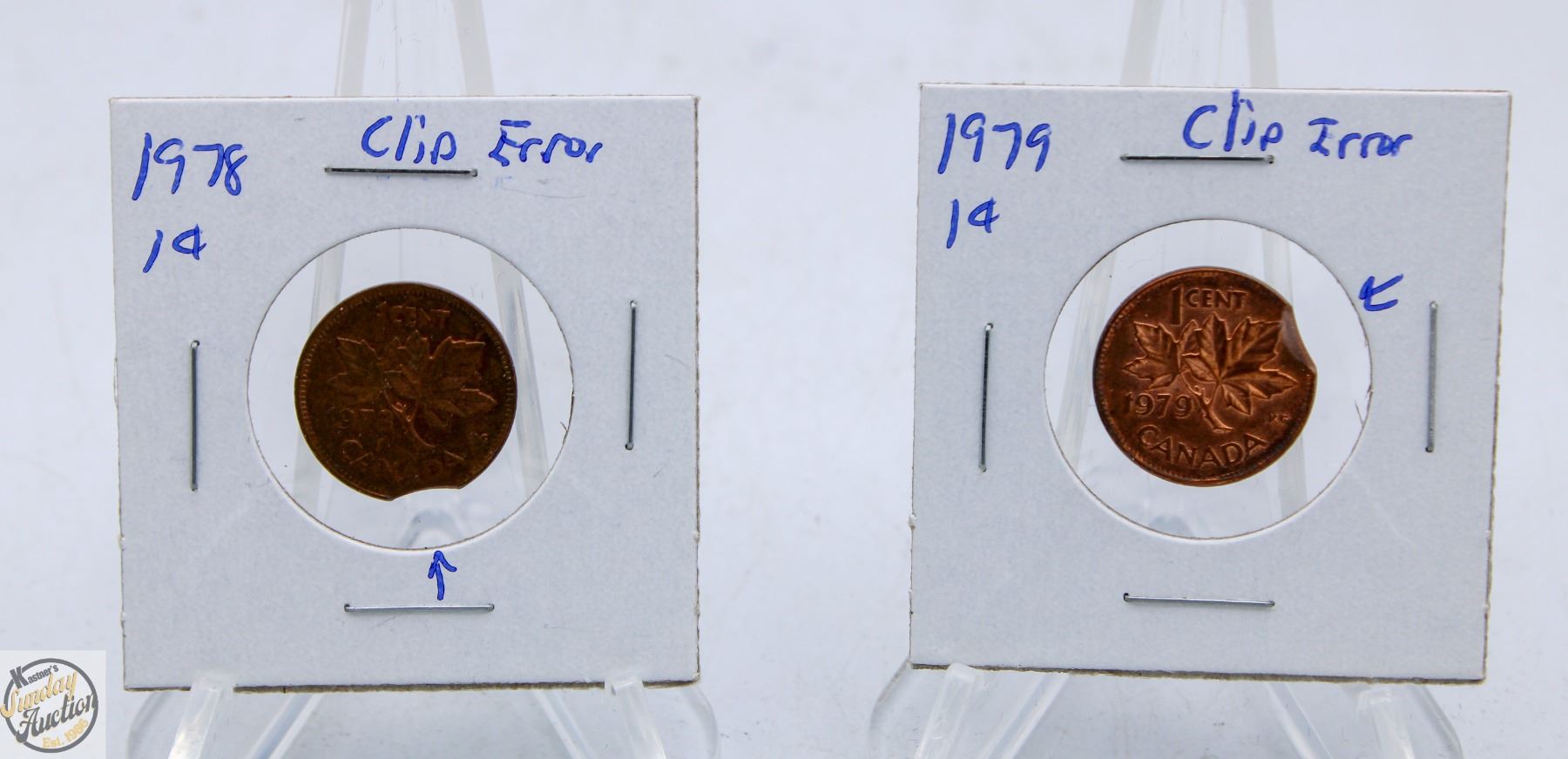 1978 & 1979 CLIPPED RIM ERROR CANADA 1 CENT COINS