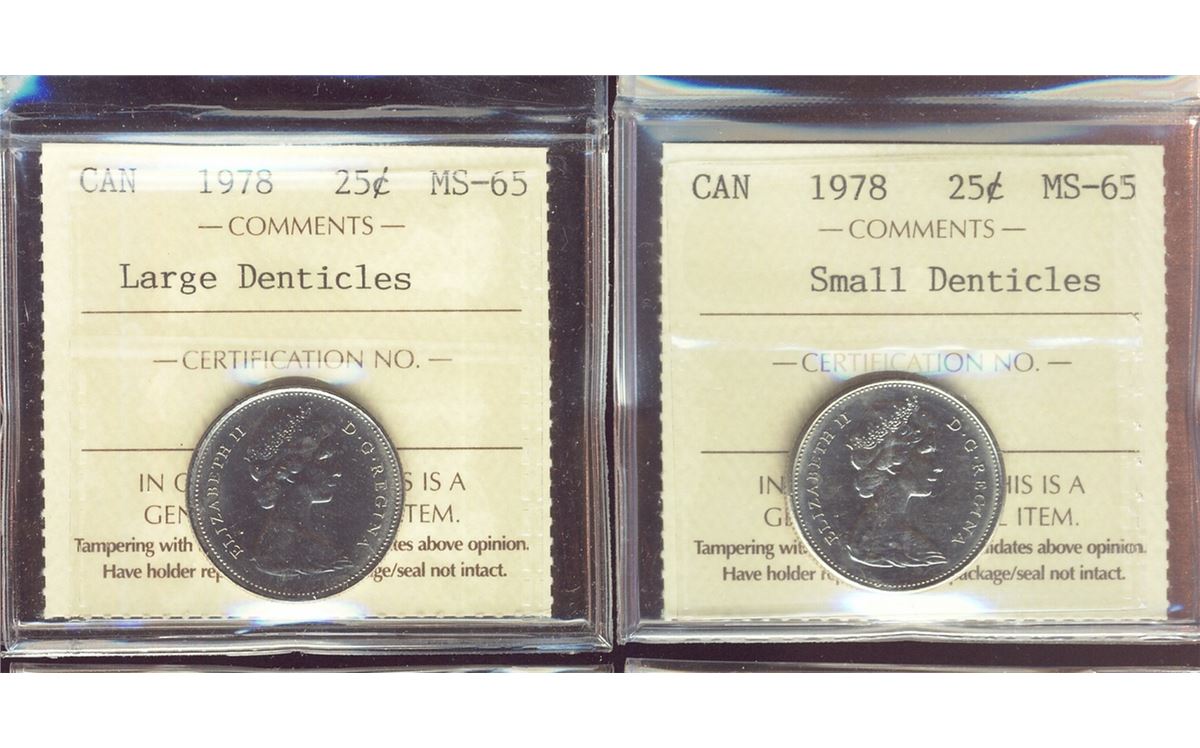 1978 25¢ Sml, 1978 Lg, 1979 & 1981 ICCS MS65. Lot of 4 coins.