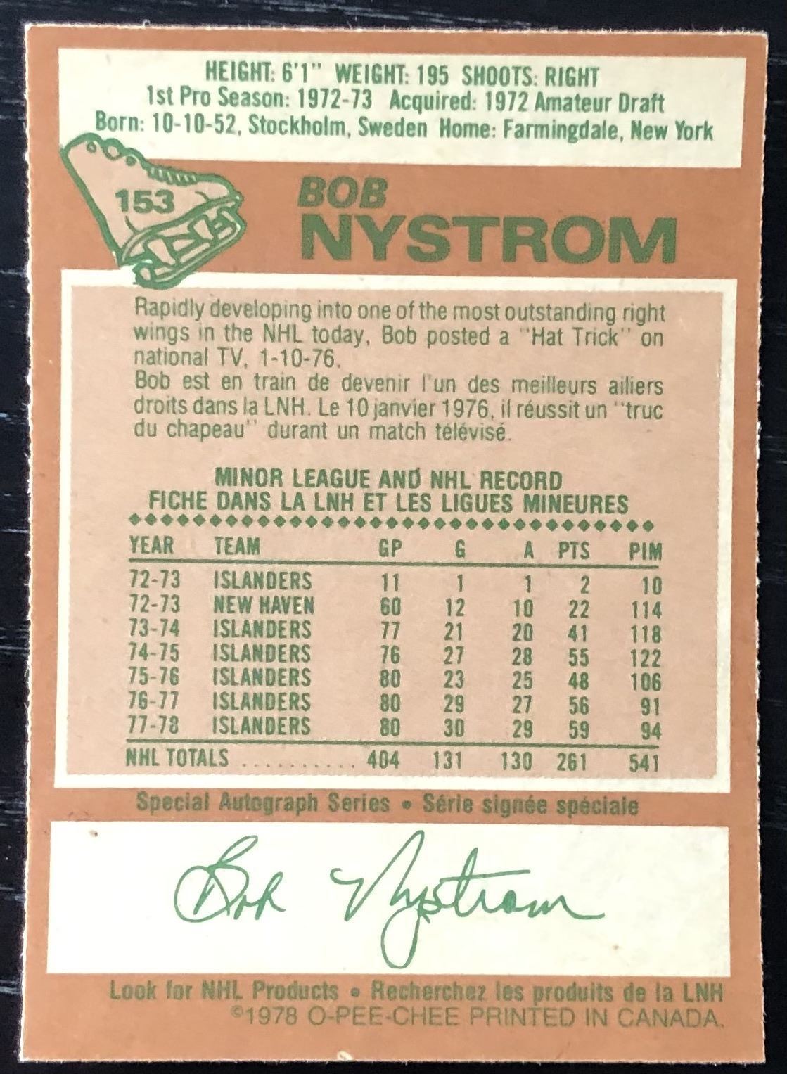 Card #153 OPC, NHL, hockey, vintage