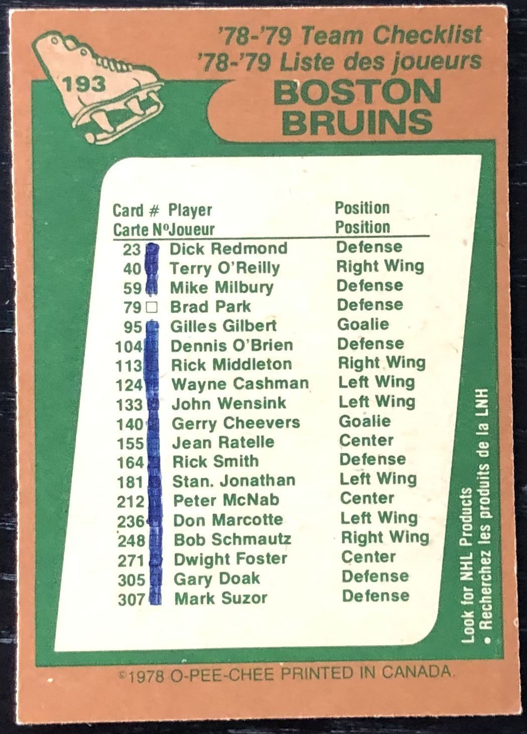 Card #193, some ink on back OPC, NHL, hockey, vintage