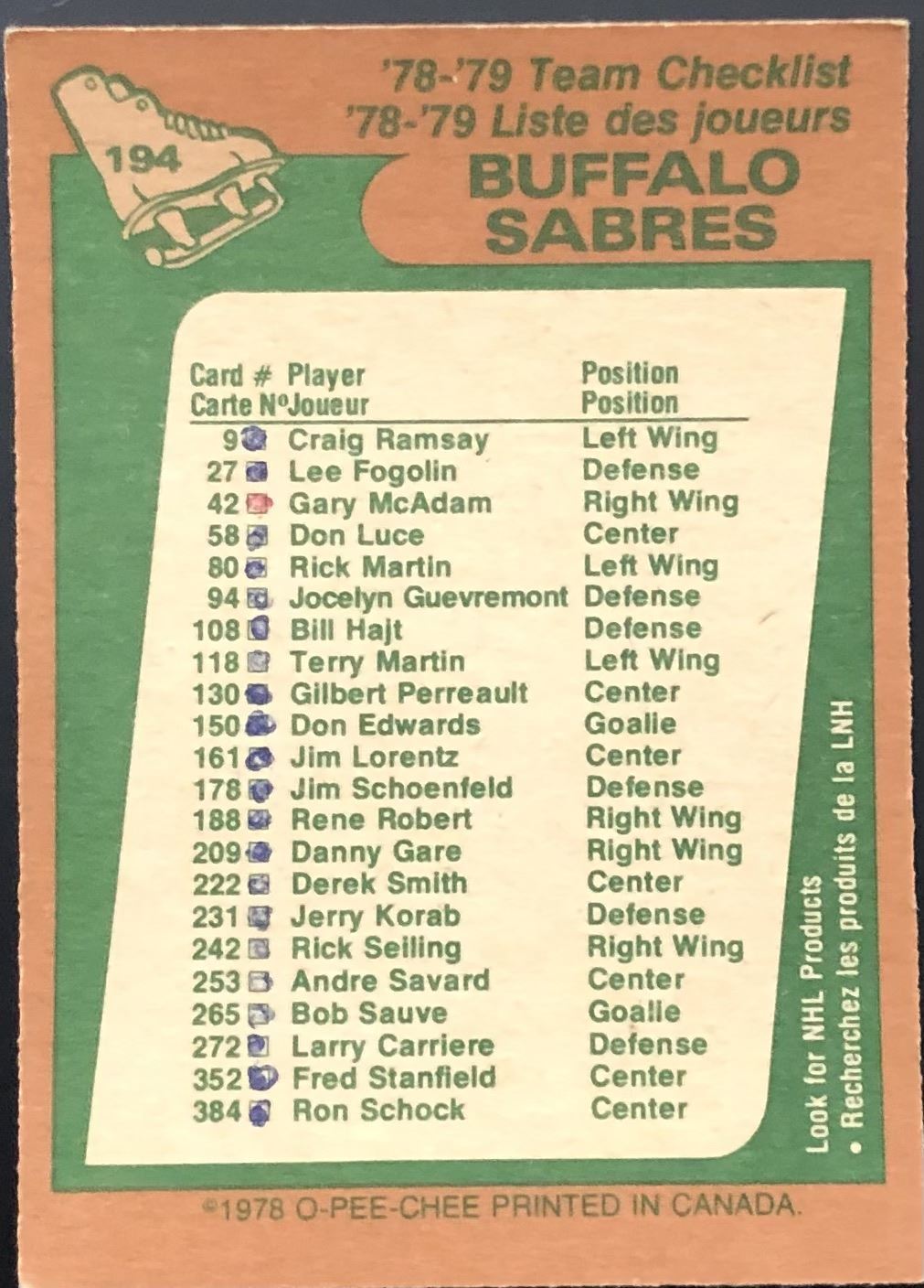 Card #194 some ink on back NHL, hockey, vintage, OPC
