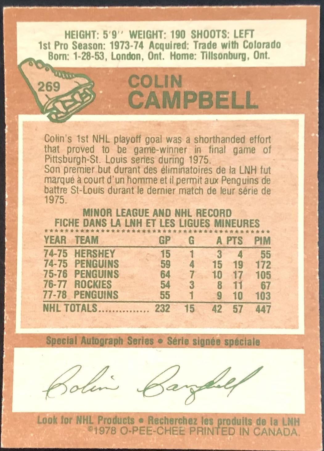 Card #269 NHL, hockey, OPC, vintage