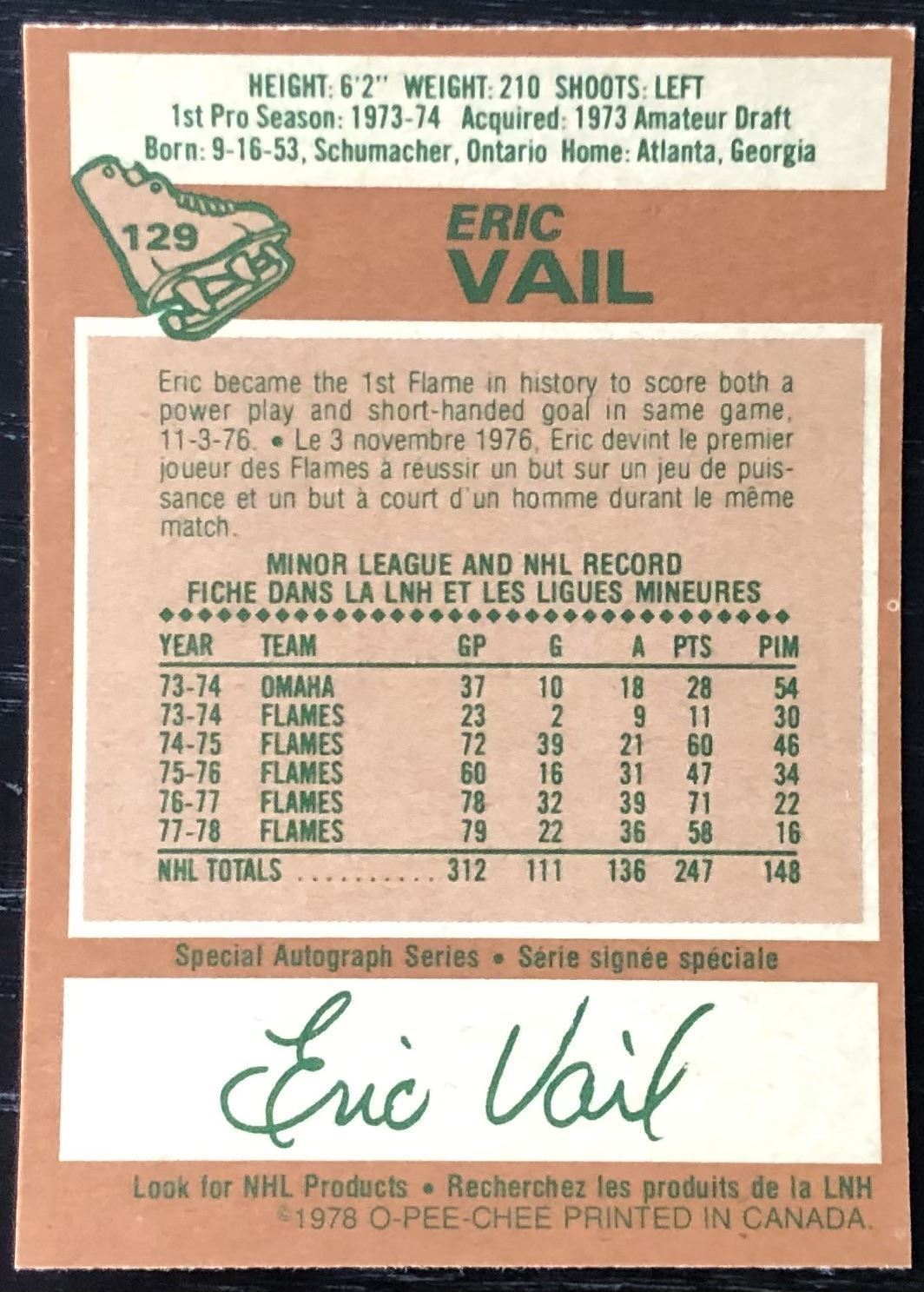 Card #129 OPC, NHL, hockey, vintage