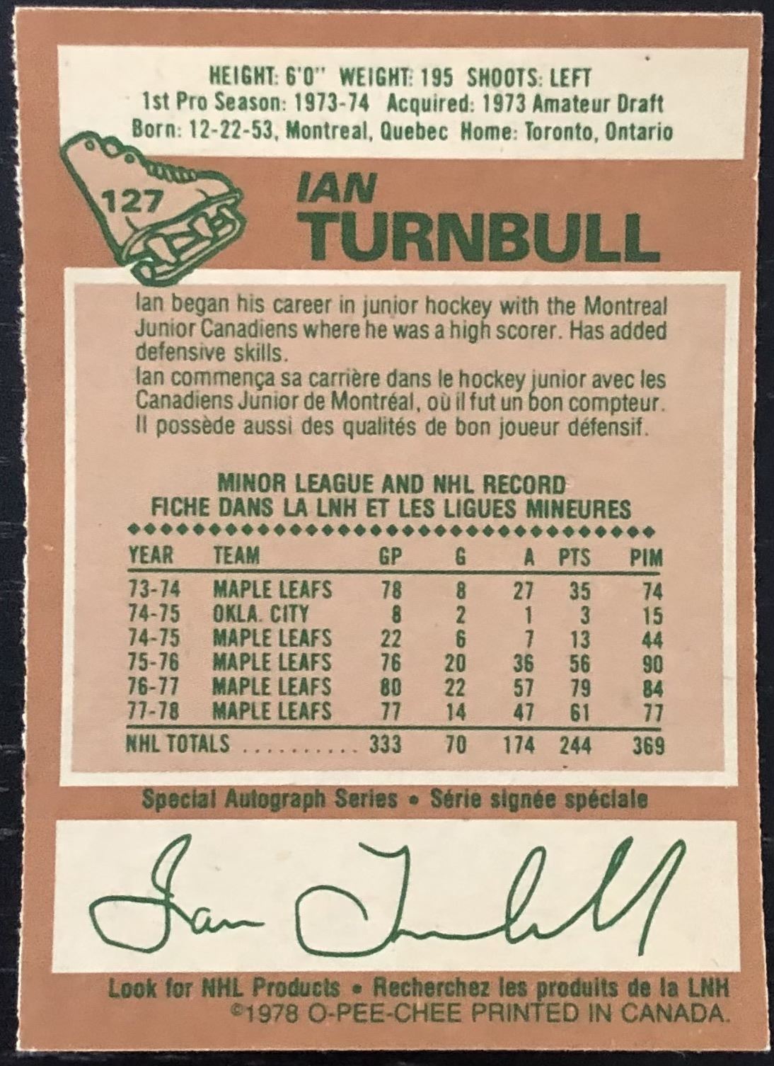 Card #127 vintage, NHL, hockey, OPC