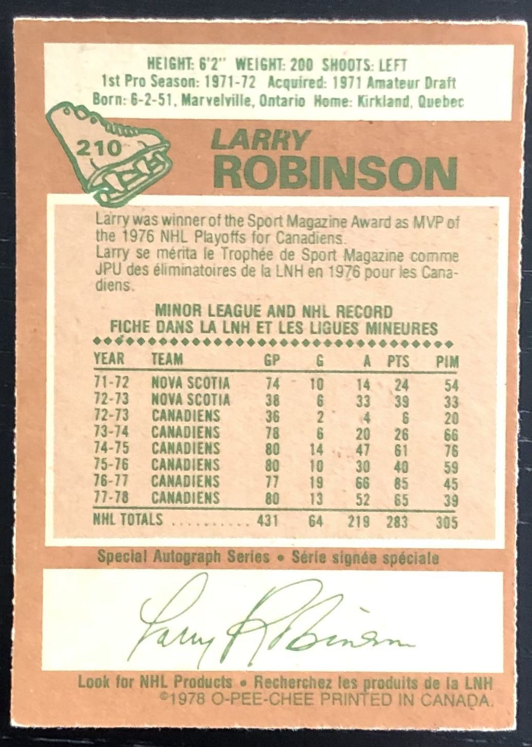 Card #210 hockey, NHL, vintage, OPC, hall of fame
