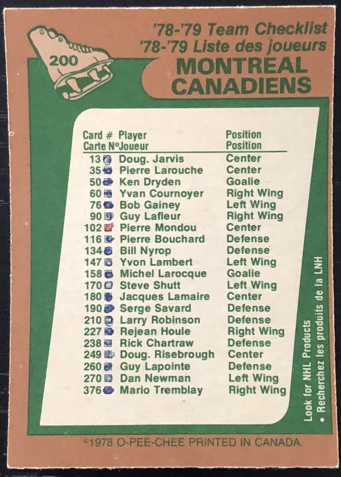 Card #200 (ink on back) vintage, NHL, hockey, OPC