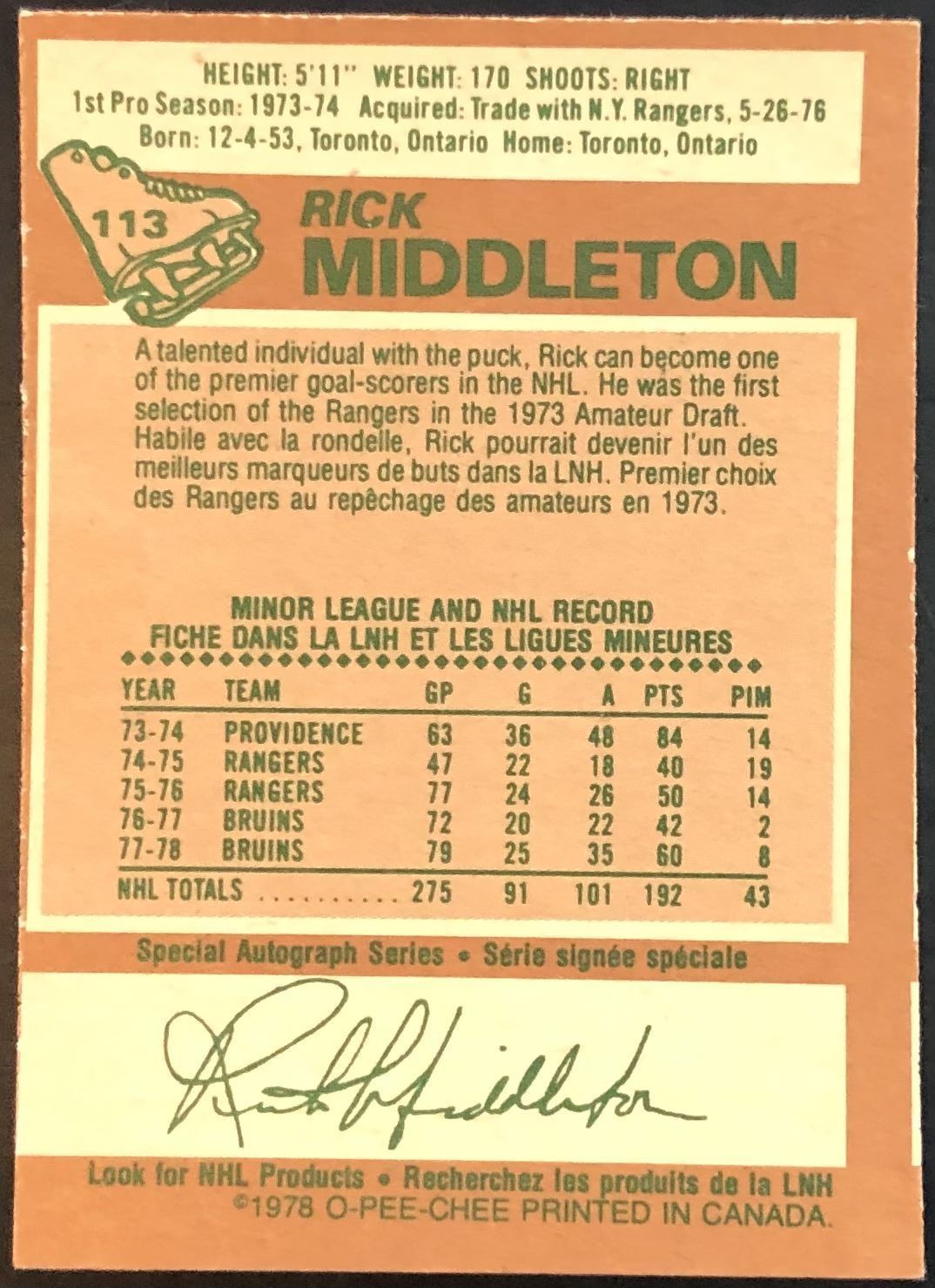 Card #113 NHL, hockey, vintage, hall of fame, OPC