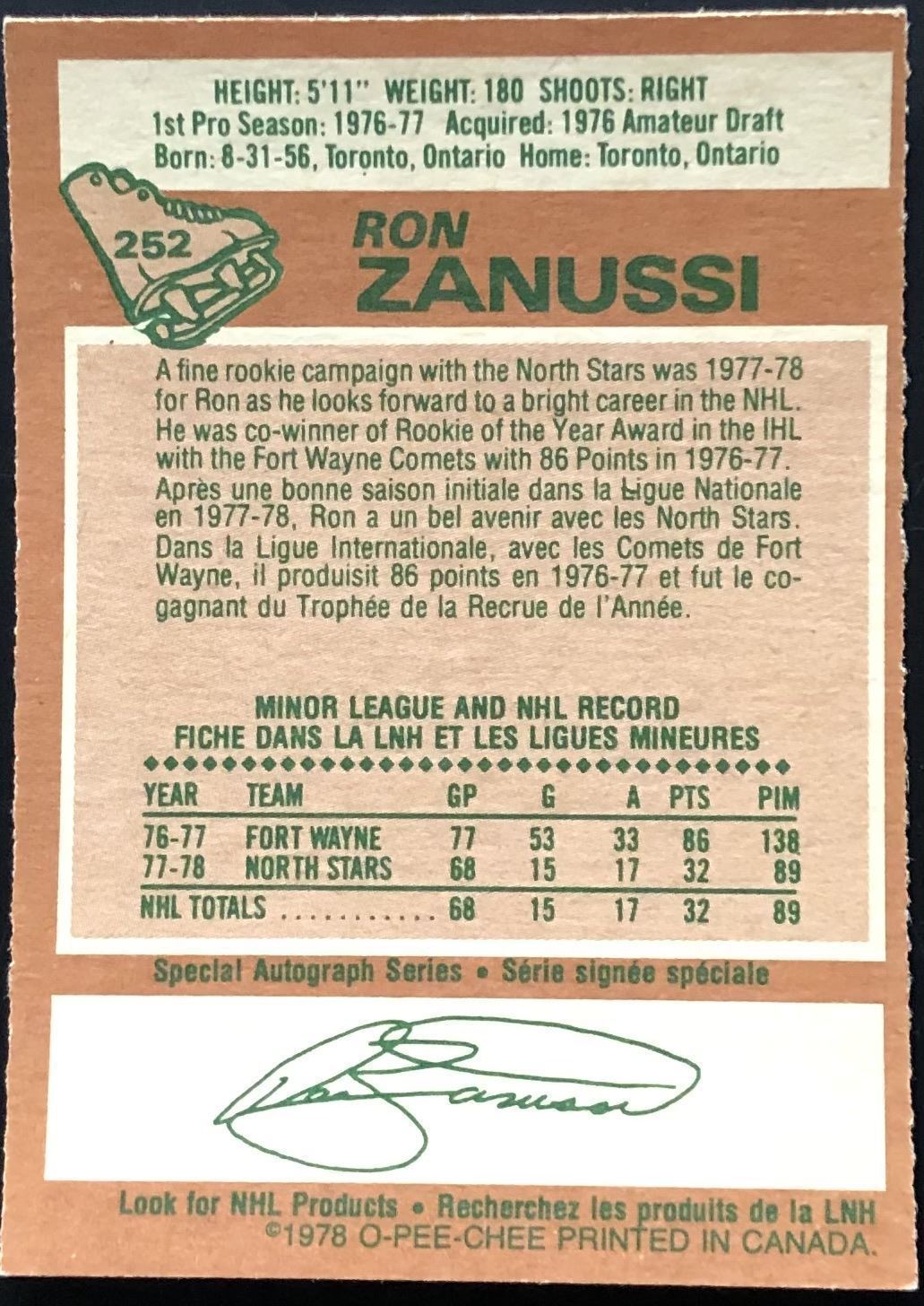 Card #252 NHL, hockey, vintage, OPC, rookie