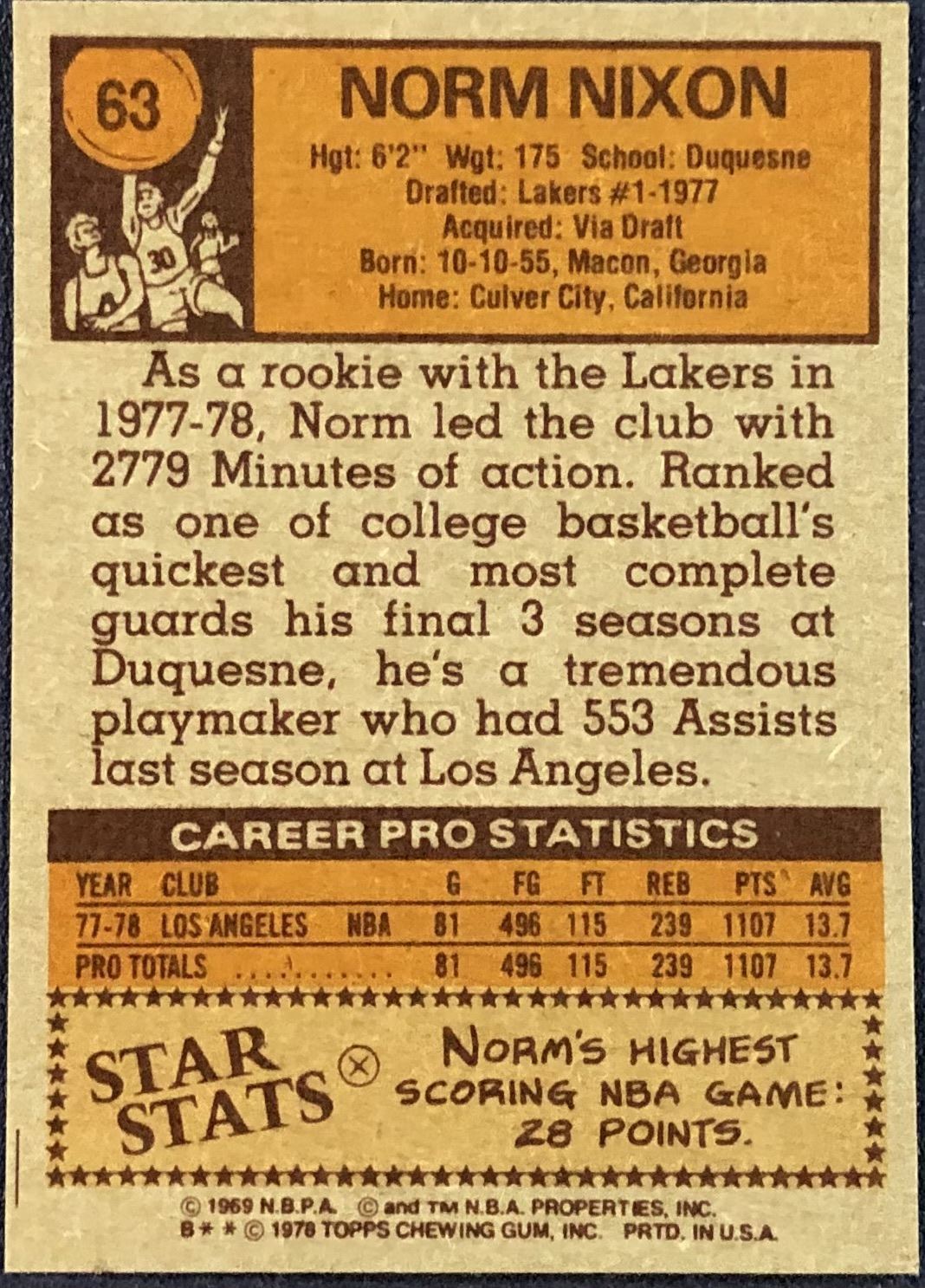 Card #63 NBA, basketball, vintage, rookie