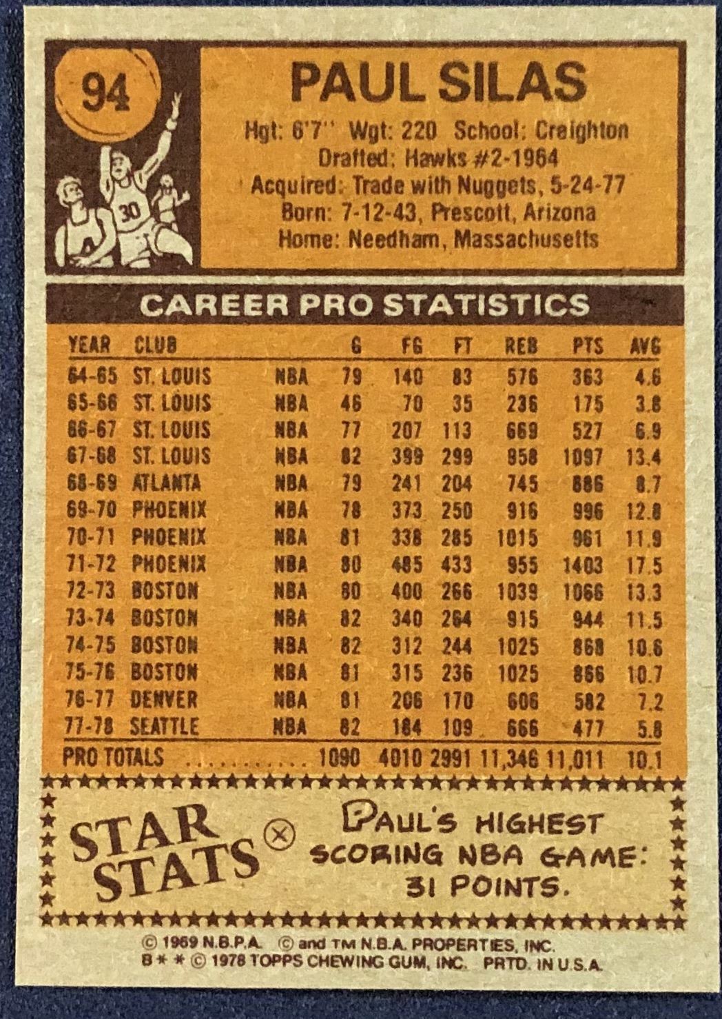 Card #94 NBA, basketball, vintage