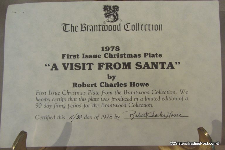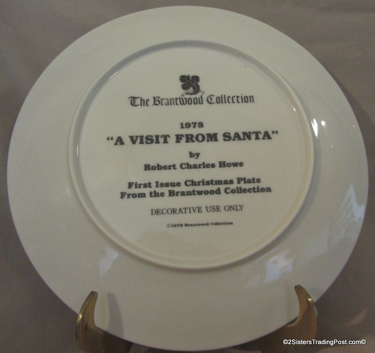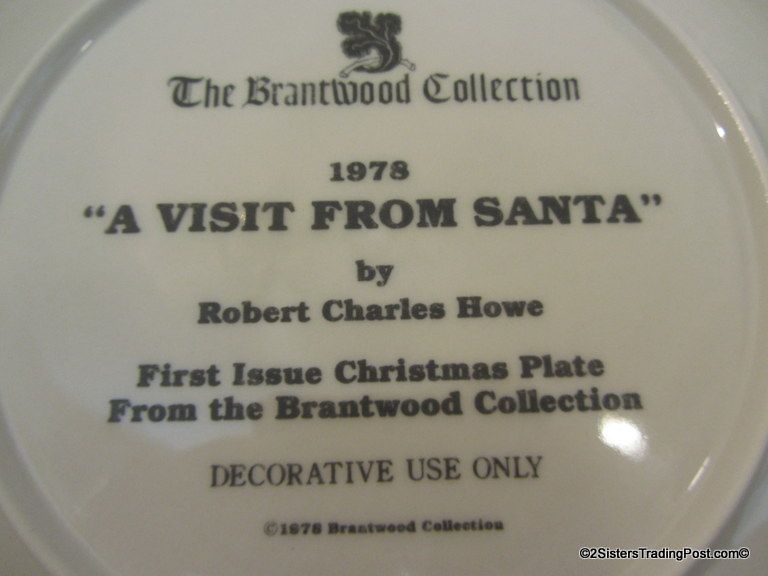 8 1/2" plate, dated 1978 'A Visit From Santa' this plate is the first issue Christmas plate from the Brantwood Collection by Robert Charles Howe. Comes in original box with paperwork. (Please see images for details)