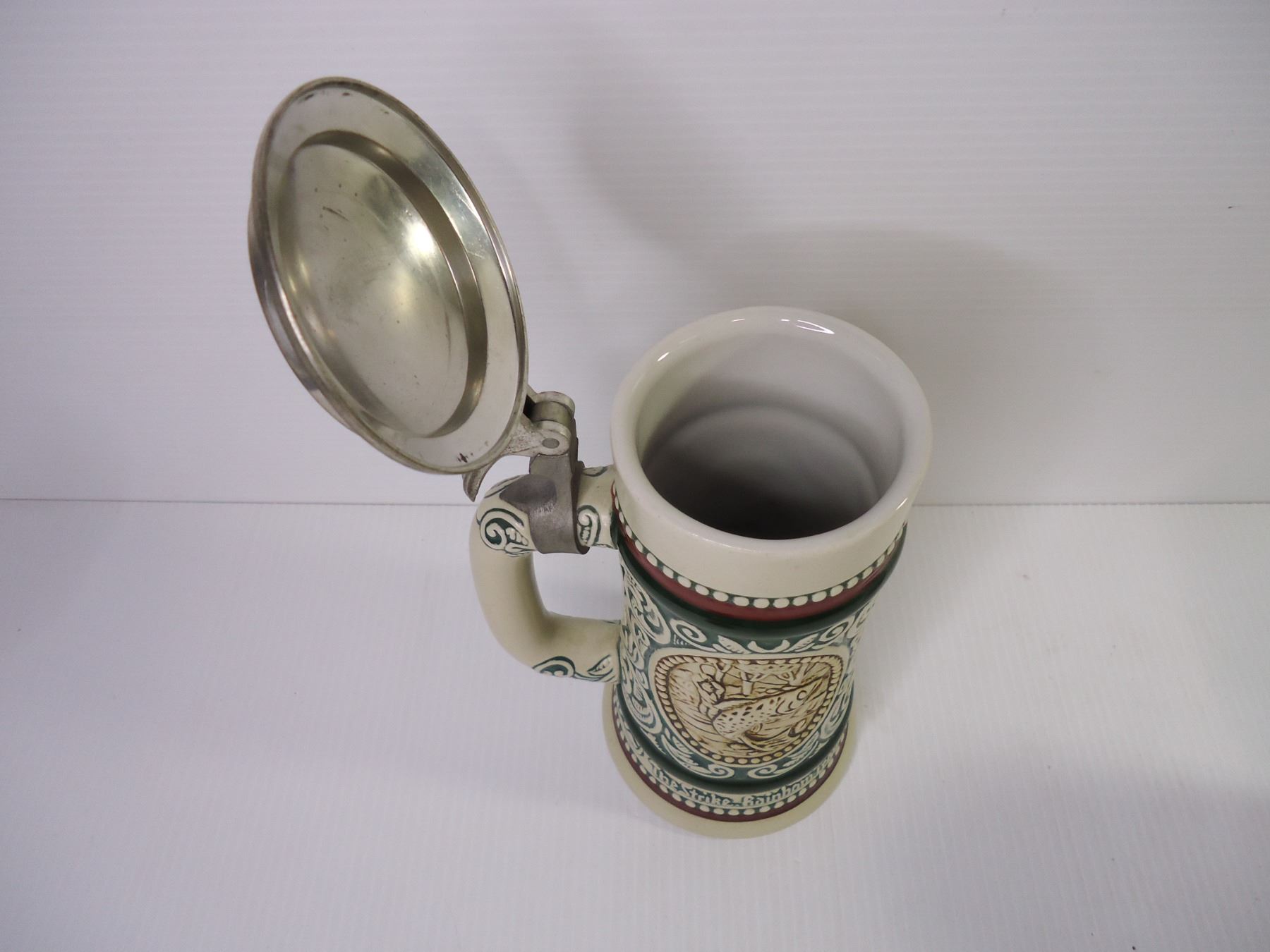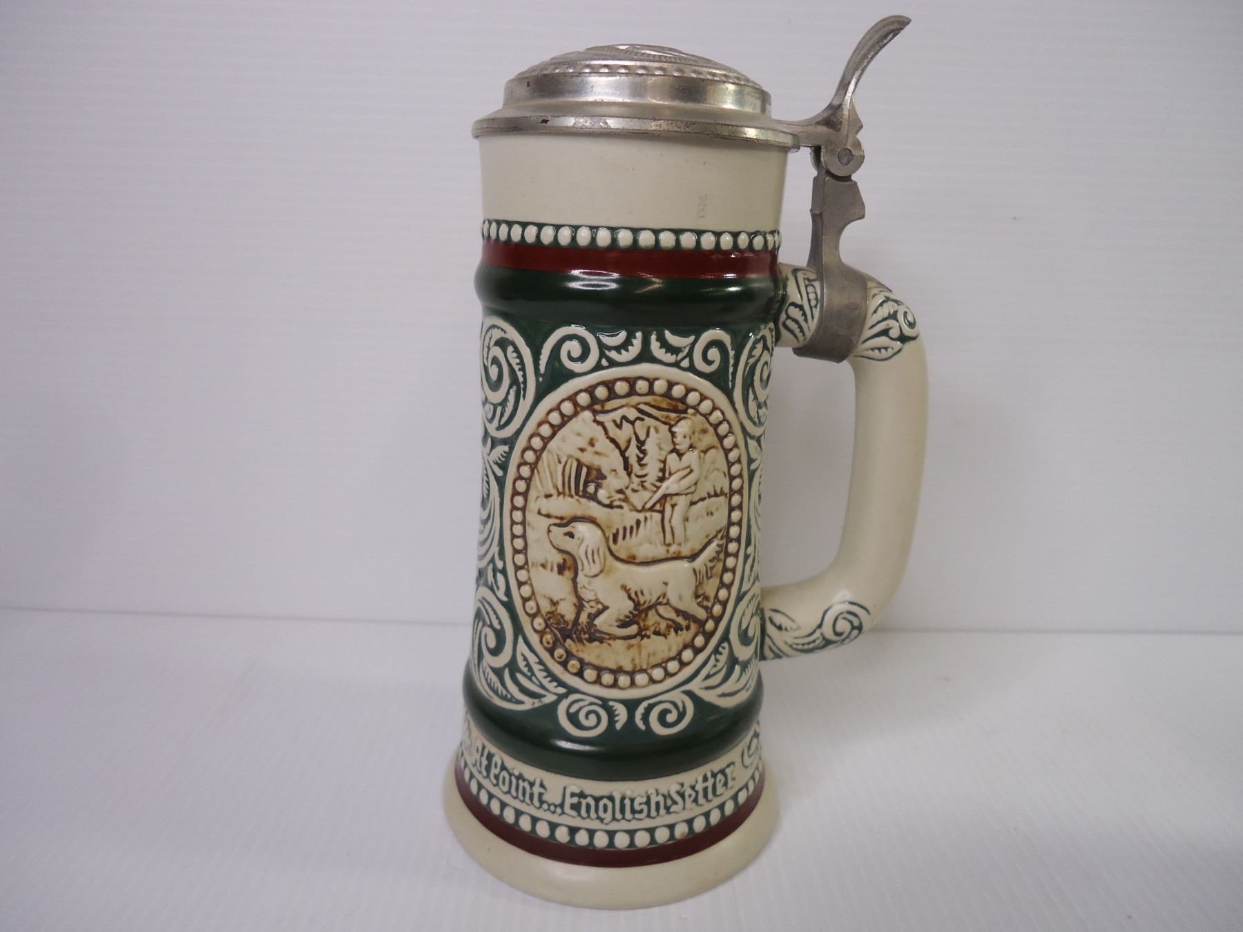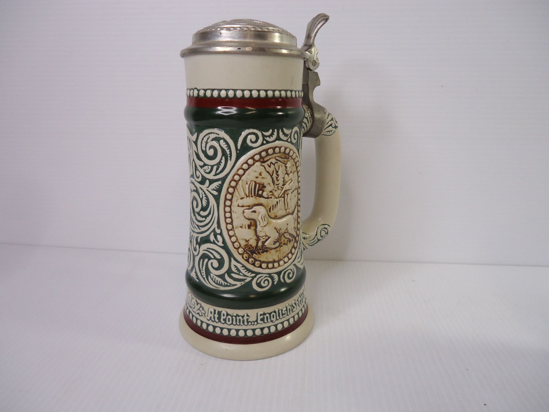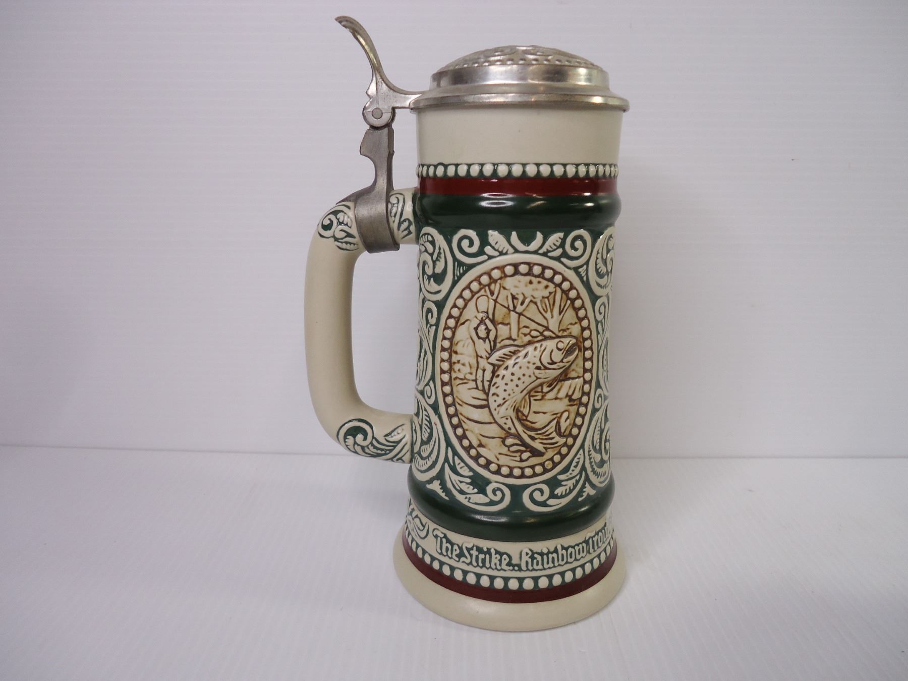 1978 Avon "lidded stein"-"Hunting Dog and Trout Fishing and Small lidded Stein for Hypo Bank-German