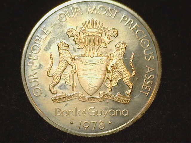 1978 Bank of Guyana One Dollar, depicts native Crocodile. Prooflike.