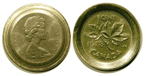 Penny struck on nickel 25 cent planchet. Deep well centred strike with capping.