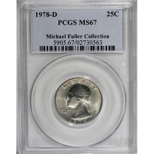 <B>1978-D 25C MS67 PCGS.</B></I> Michael Fuller Collection. PCGS Population (27/0). NGC Census: (1/0). Mintage: 287,373,152. Numismedia Wsl. Price for NGC/PCGS coin in MS67: $200. (#5905)<BR><BR><B>Coin Engraver:</B> John Flanagan<BR><BR><b>Shipping:</b> Coins & Currency (<a target="_blank" href="http://www.heritageauctions.com/common/shipping.php">view shipping information</a>)