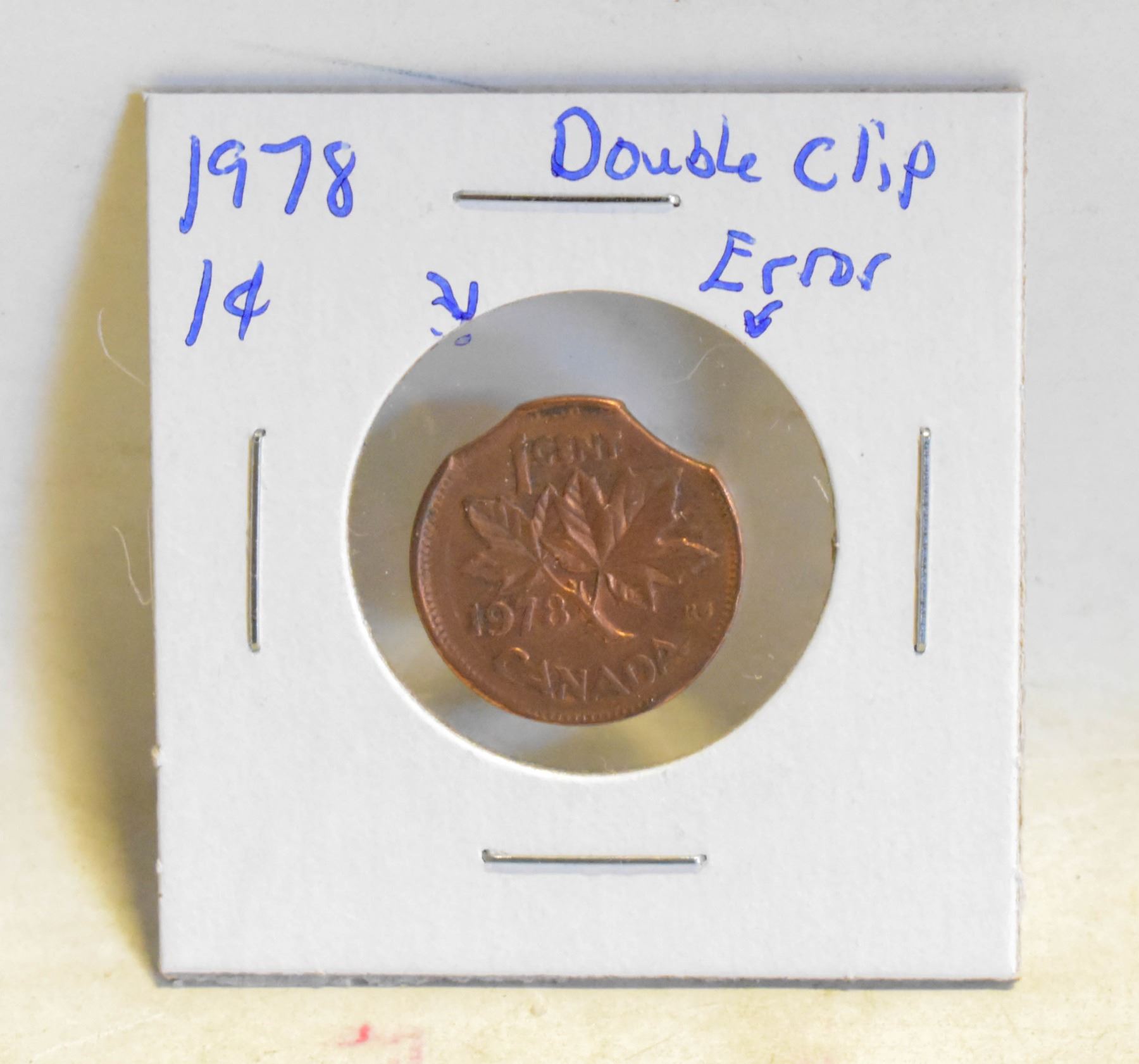 1978 DOUBLE RIM CLIP ERROR CANADA 1 CENT COIN