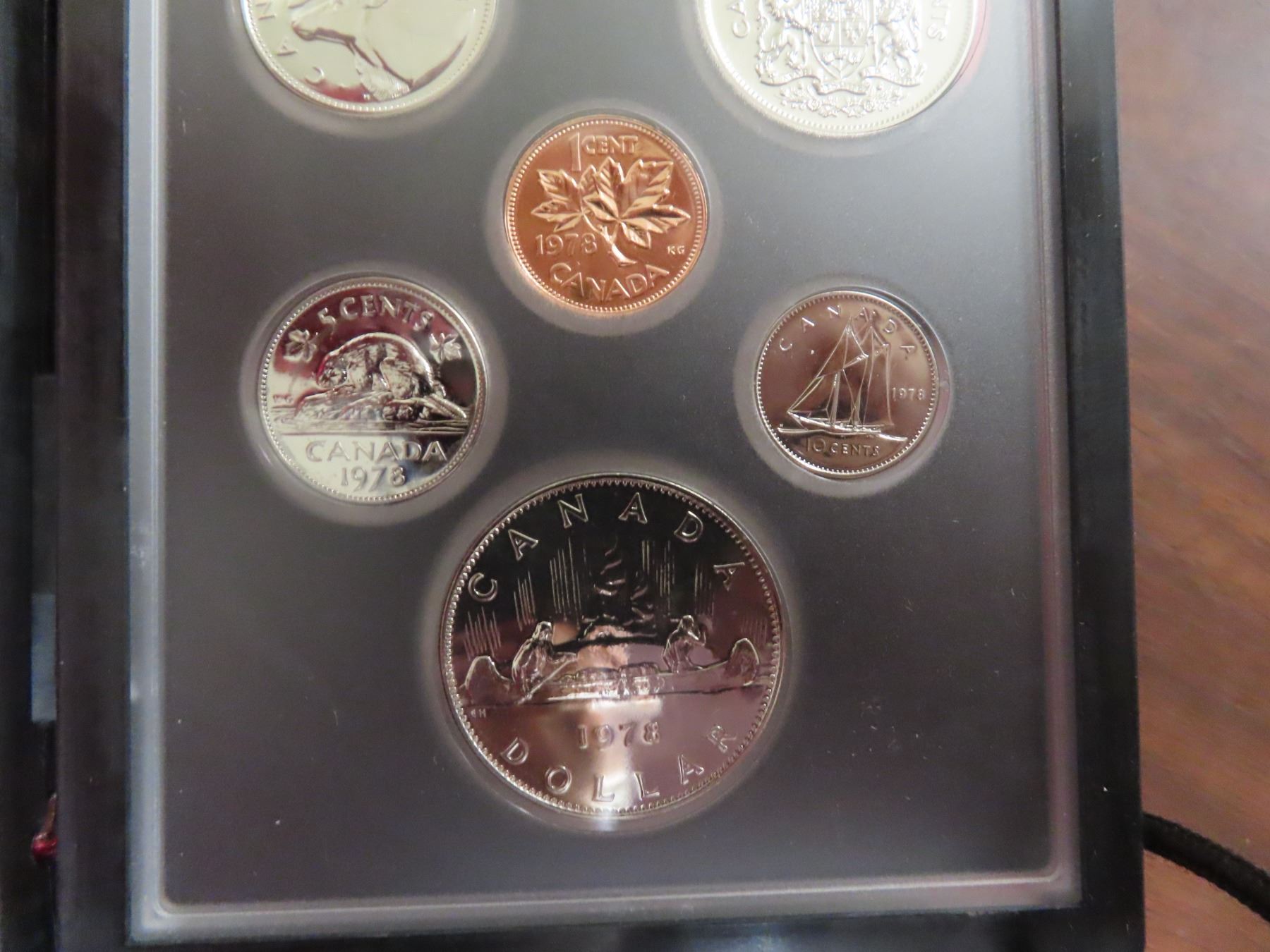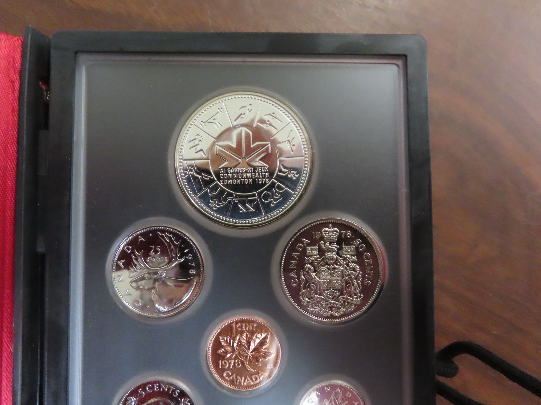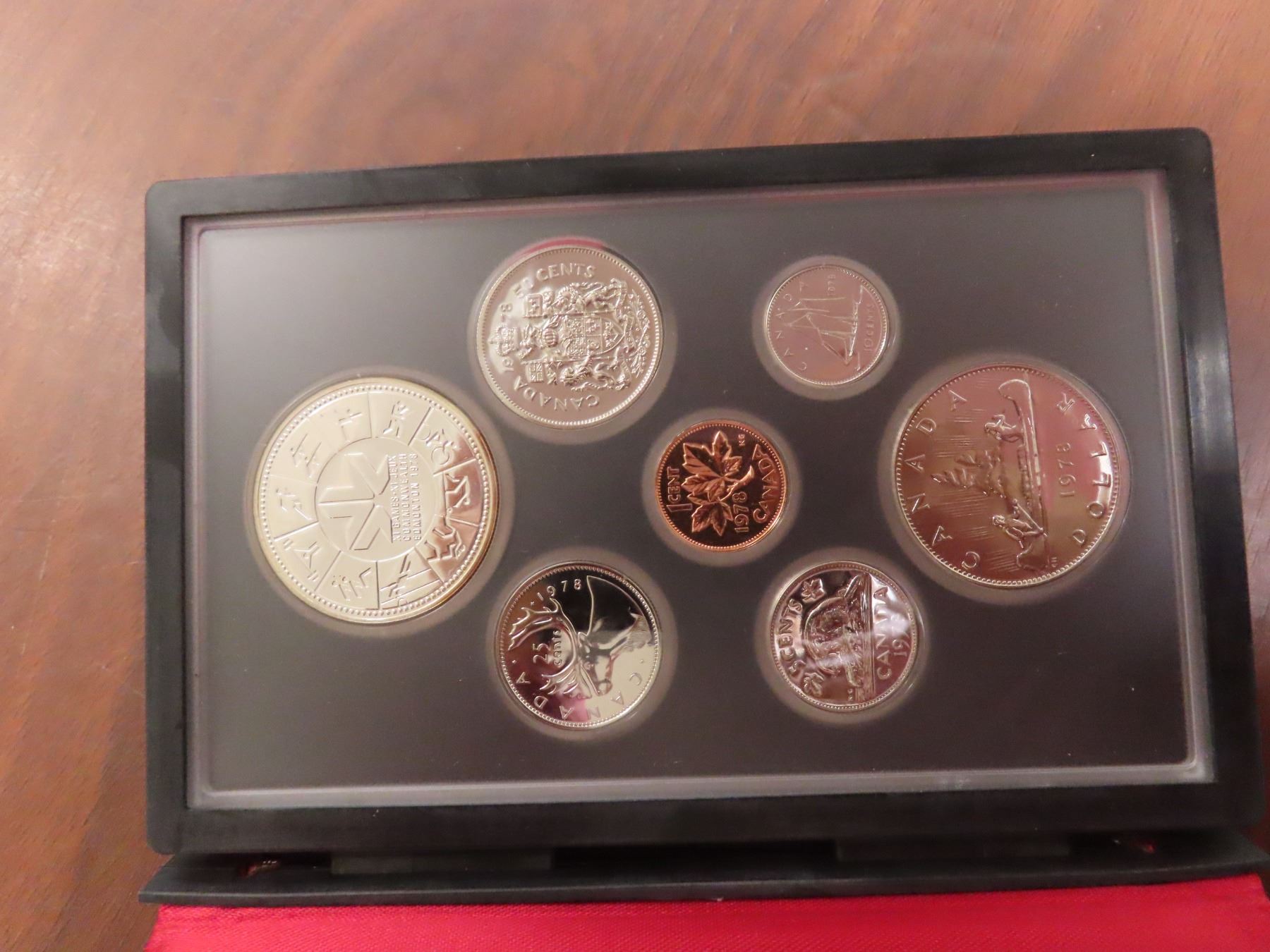 1978 Double Dollar Prestige Specimen Set. The Silver Dollar commemorates the Commonwealth Games in Edmonton. Includes Certificate of Authenticity. Bright White. Housed in its original Royal Canadian Mint case of issue.