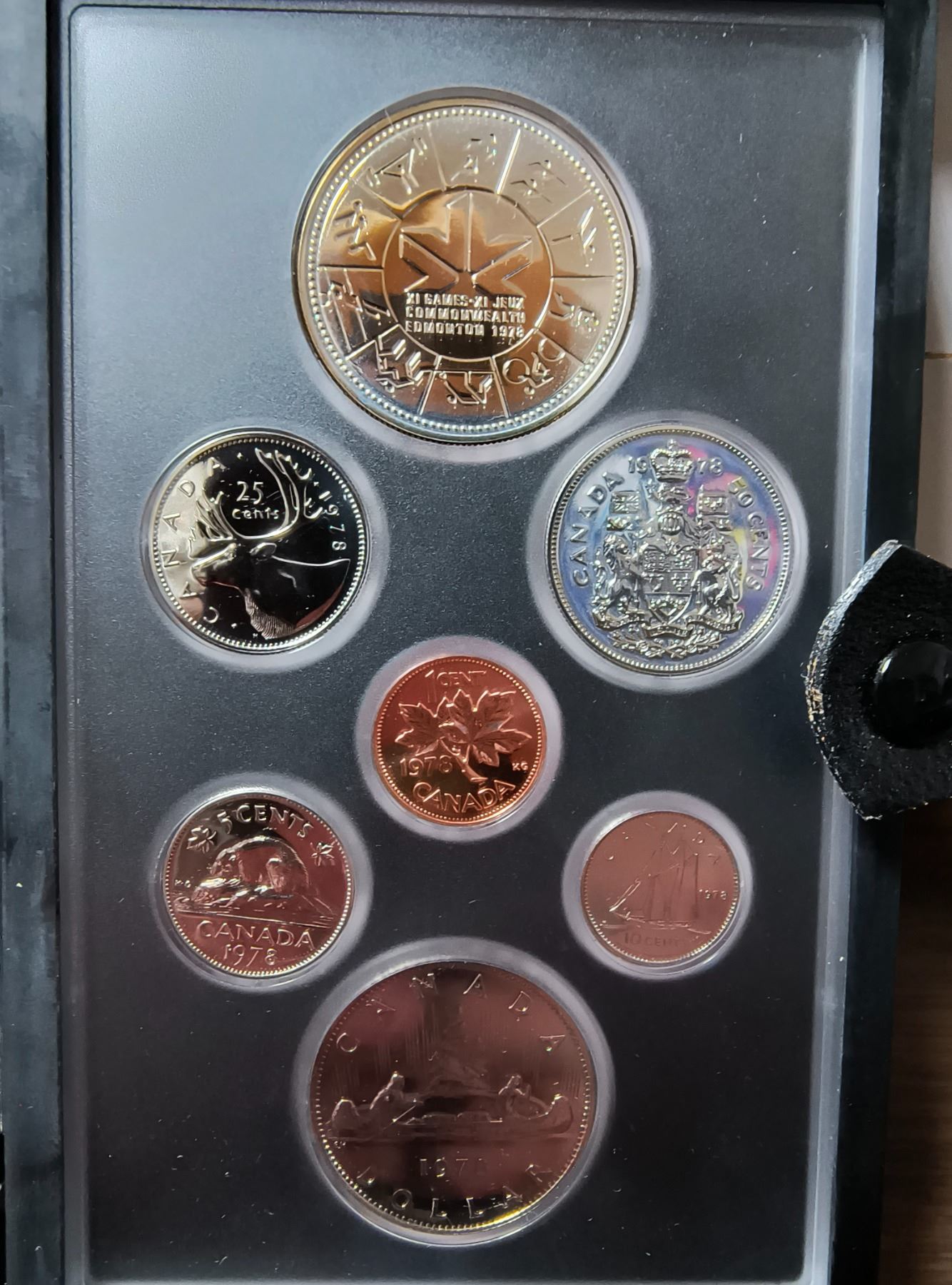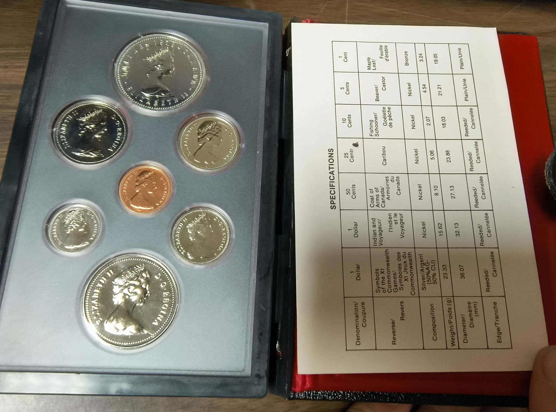 1978 Double Dollar Prestige Specimen Set. The Silver Dollar commemorates the Commonwealth Games in Edmonton. Housed in its original Royal Canadian Mint case of issue. Includes Certificate of Authenticity.