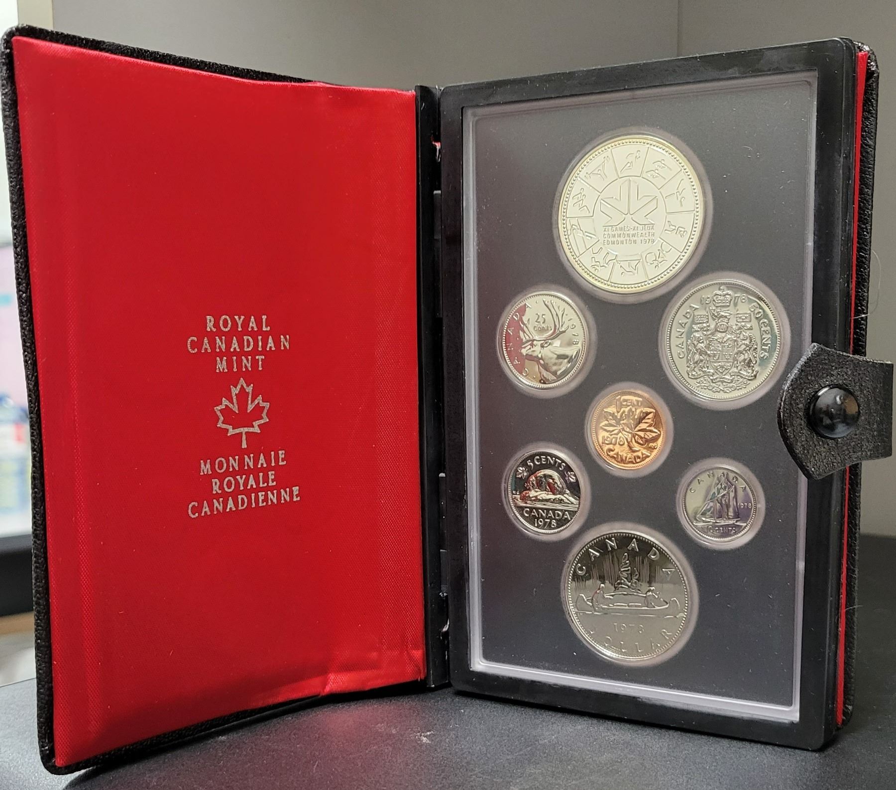1978 Double Dollar Silver Specimen Set. 7-coin set includes Silver Dollar that celebrates the Commonwealth Games held in Edmonton. Housed in its original case of issue.