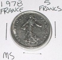 1978 FRANCE 5 FRANCS *RARE MS HIGH GRADE!! COIN CAME OUT OF SAFE!! ***Coin, Currency & All Items Listed in this auction - Grades, Conditions and Values are not Safe Deposit Coins LLC Responsibilty. Grades, Condition and Values are determined by Consigner(s) & Buyers ONLY