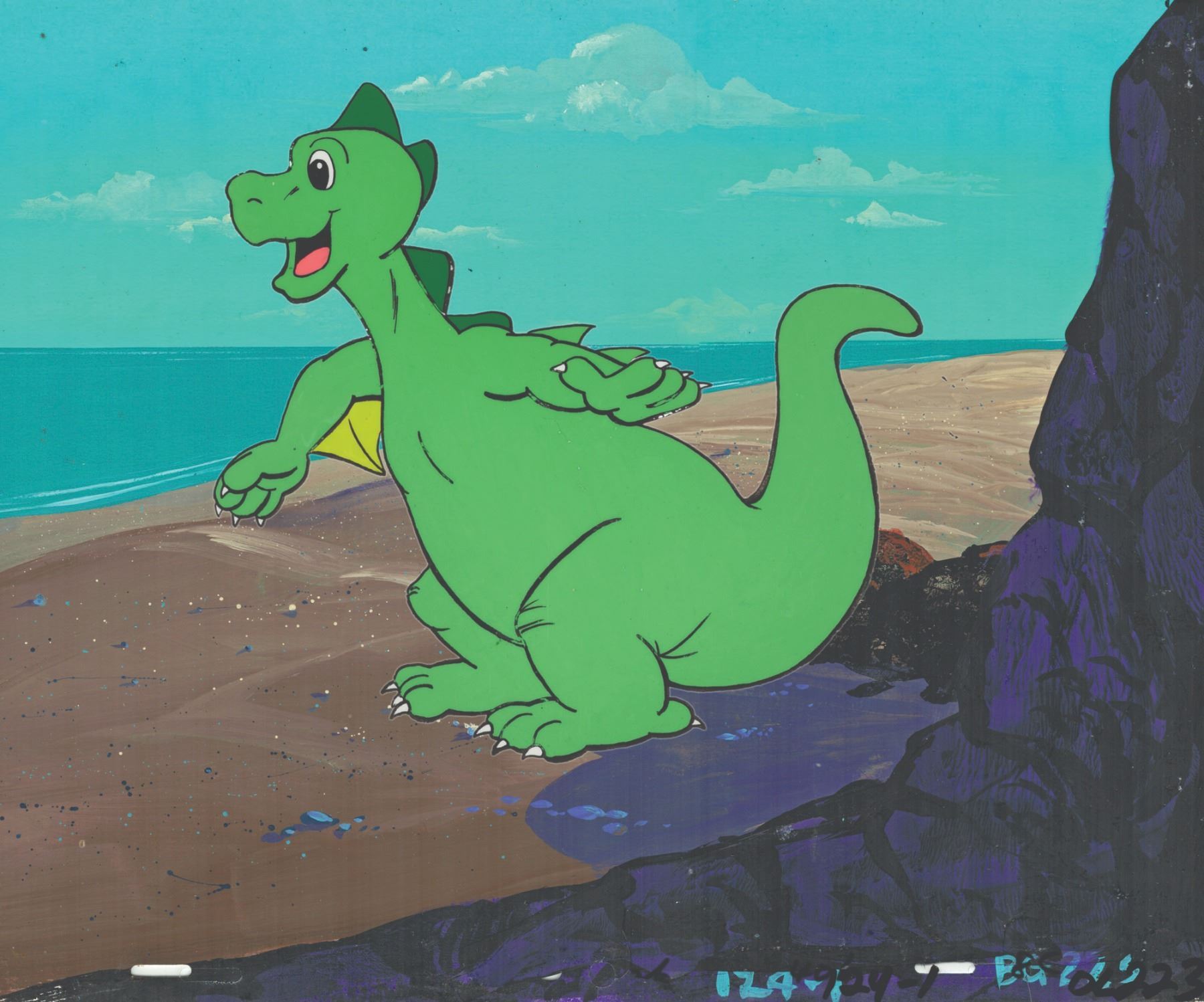 1978. Production Cel of ‘Godzooky’ on Production Background from Hanna Barbera’s GODZILLA POWER HOUR!. . VG+ with minor wear to cel and background.