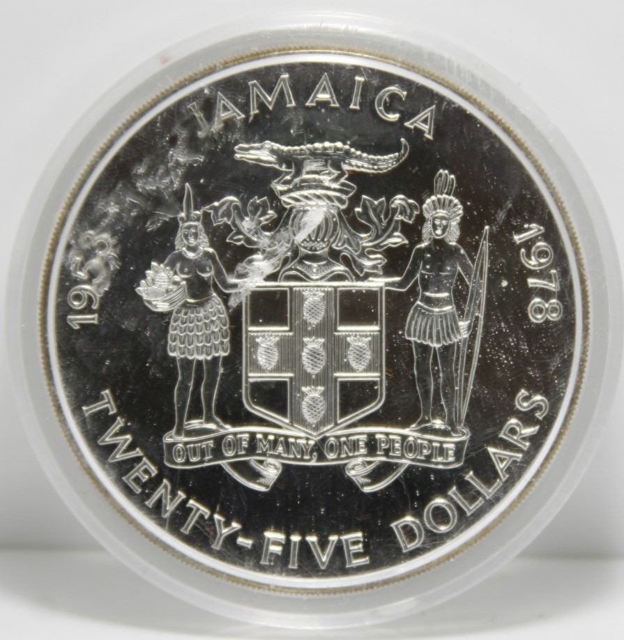 1978 Jamaica $25 Silver Commemorative Coin - 25th Anniversary of the Coronation of Elizabeth II - 4.04 Oz ASW
