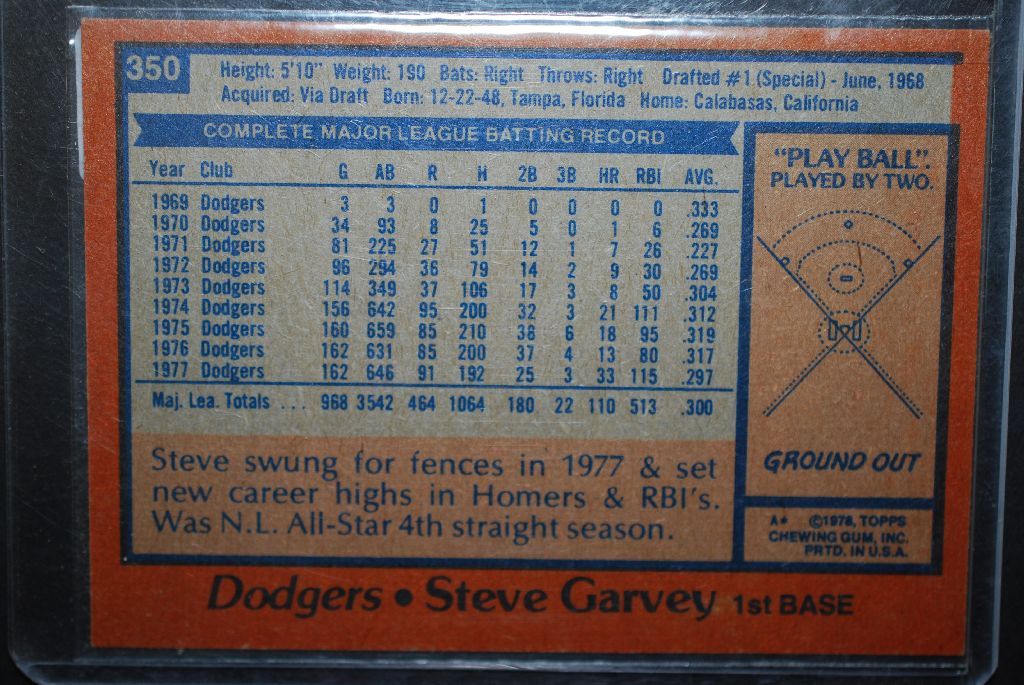 1978 MLB Steve Garvey Los Angeles Dodgers NL All-Star Baseball Trading Card; EST. $5-10