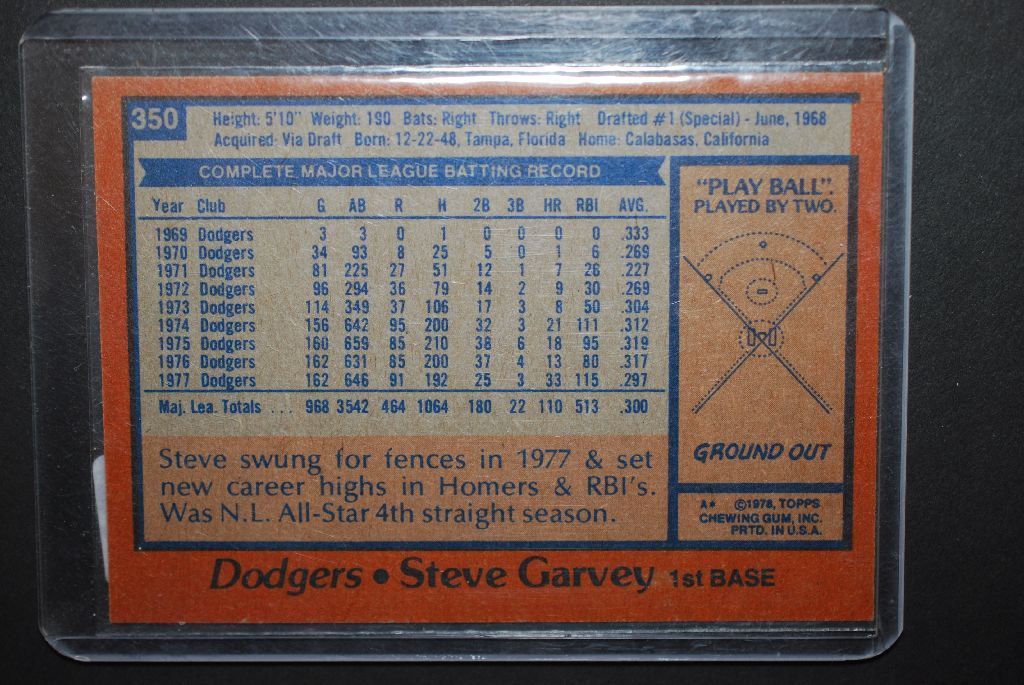 1978 MLB Steve Garvey Los Angeles Dodgers NL All-Star Baseball Trading Card; EST. $5-10
