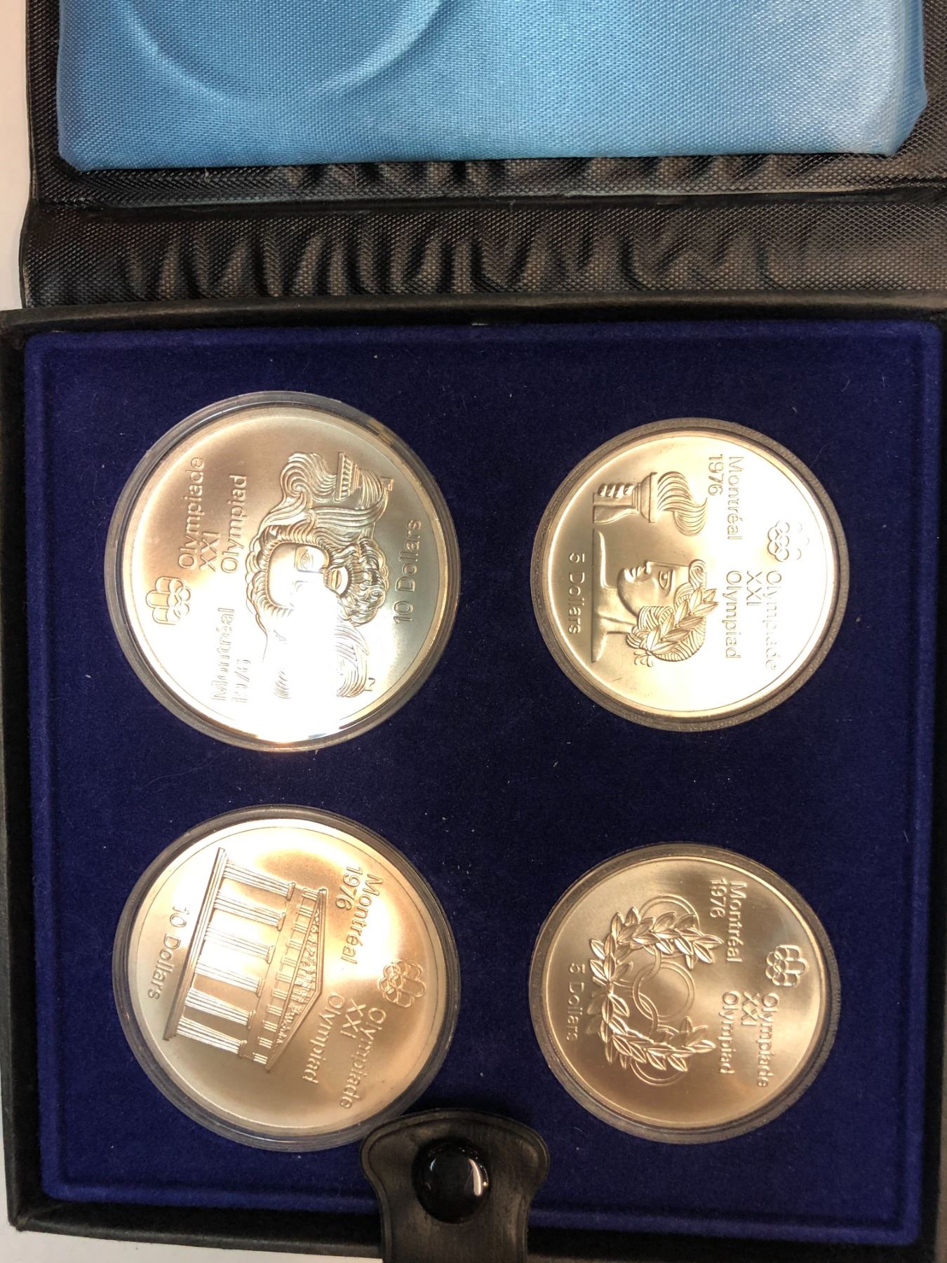 1978 Montreal Olympics Silver Coin Set The 2 $10 Coins are 92.5% Sterling Silver and weigh 48g each The 2 $5 Coins are 92.5% Sterling Silver and Weigh 24.3g each