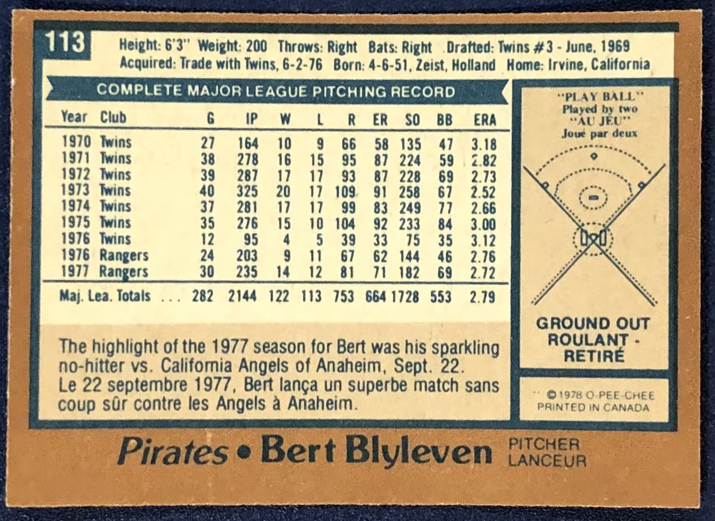Card #113 MLB, baseball, OPC, vintage, hall of fame
