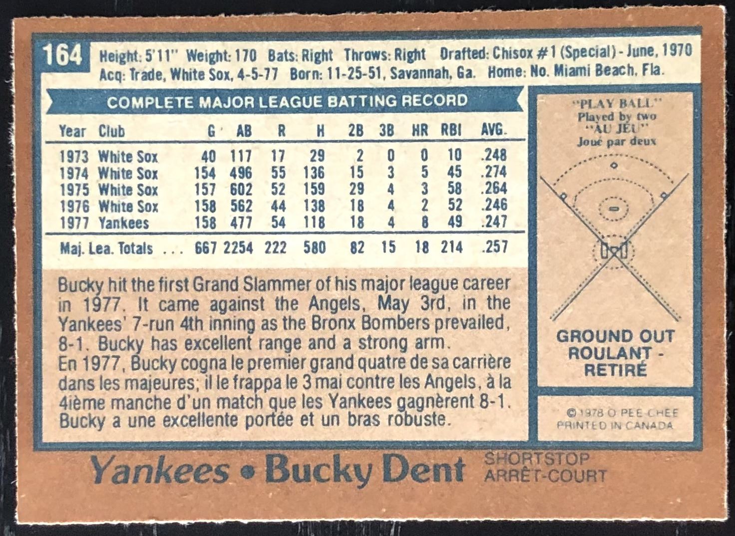 Card #164 MLB, baseball, vintage, OPC