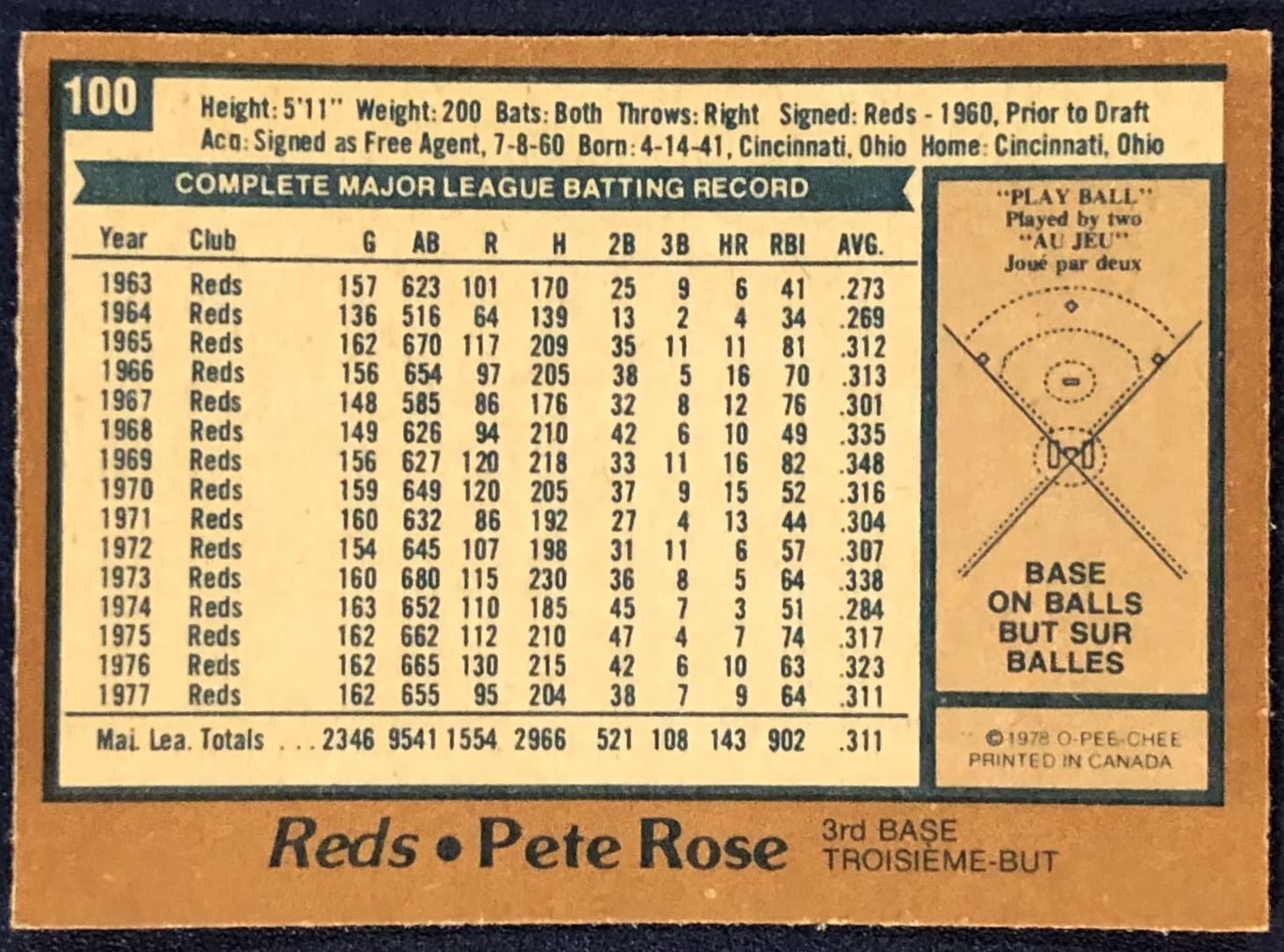 Card #100 MLB, baseball, OPC, vintage