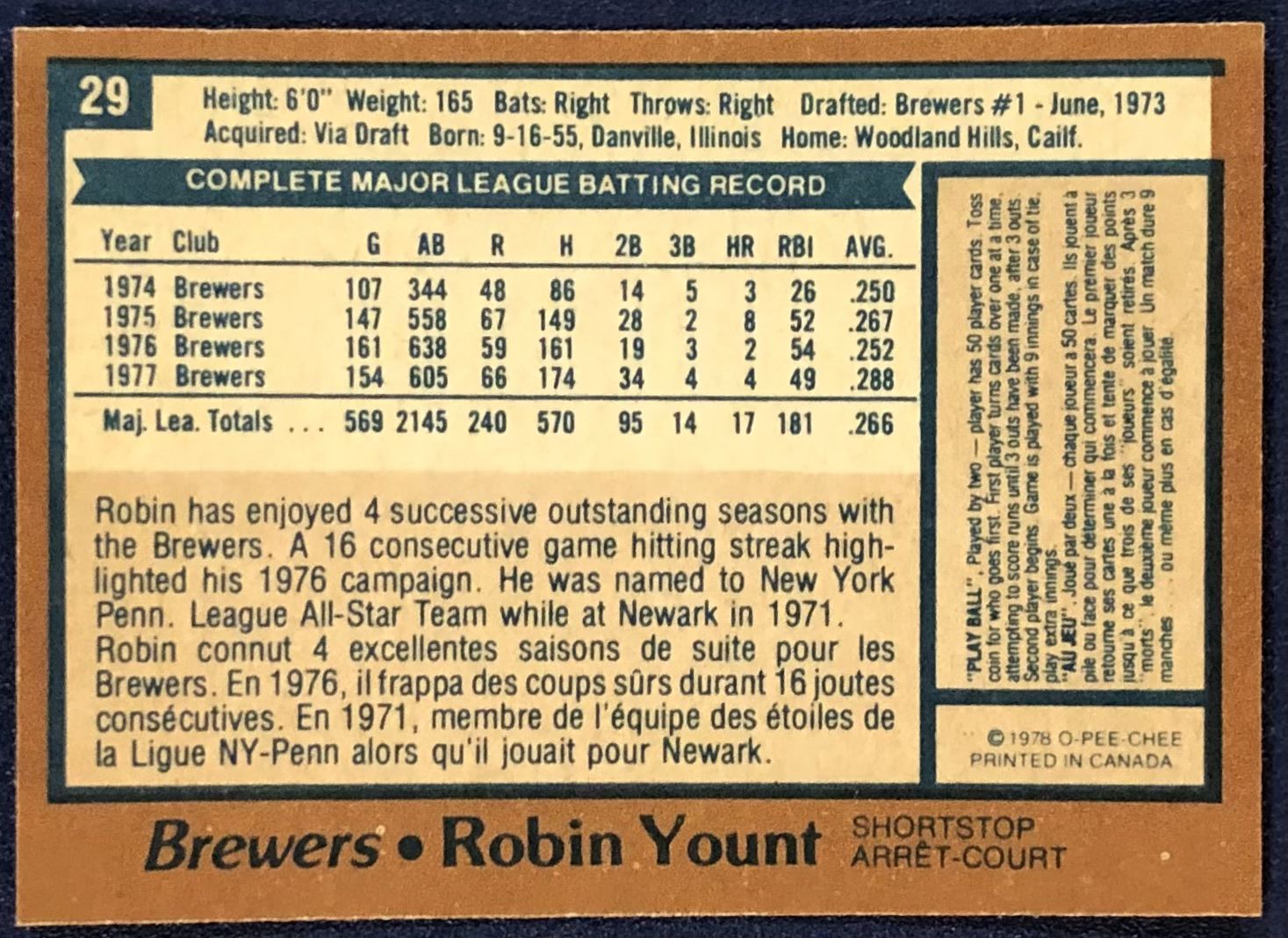 Card #29 MLB, baseball, OPC, vintage, hall of fame