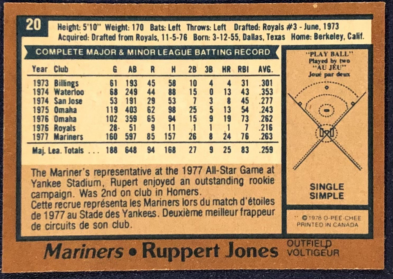 Card #20 MLB, baseball, OPC, vintage, rookie