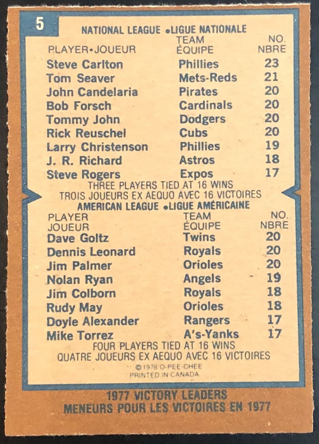 Card #5 MLB, baseball, vintage, OPC, hall of fame