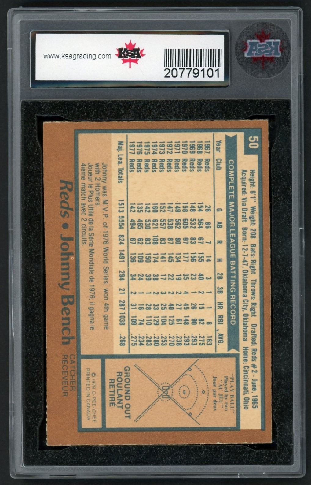 Nice OPC version of the 1978 Johnny Bench card, HOFer, greatest catcher of all time? Graded 7 NM by KSA!