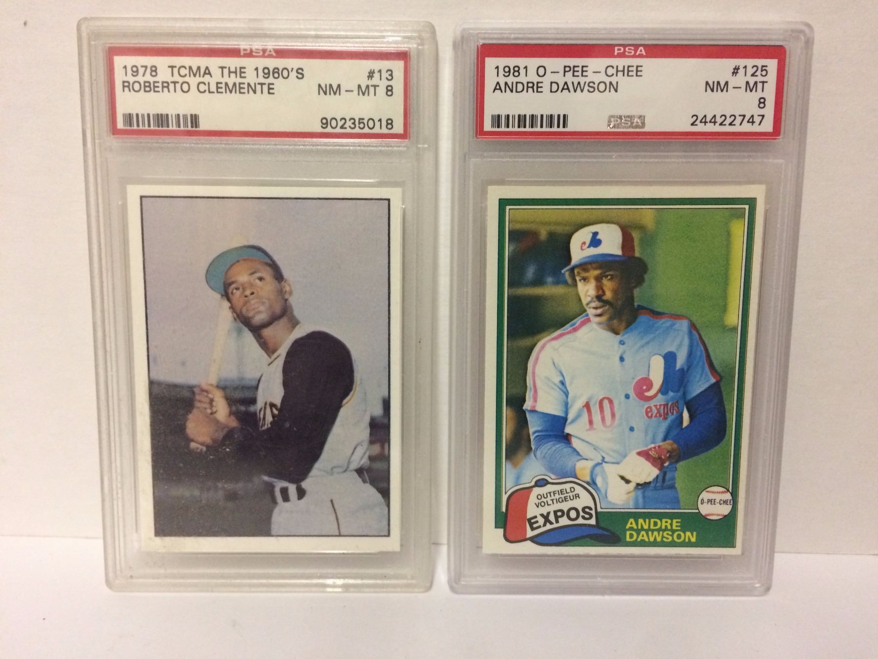 1978 ROBERTO CLEMENTE #13 (NM-MT 8) & 1981 ANDRE DAWSON #125 O-PEE-CHEE (NM-MT 8) BASEBALL CARDS