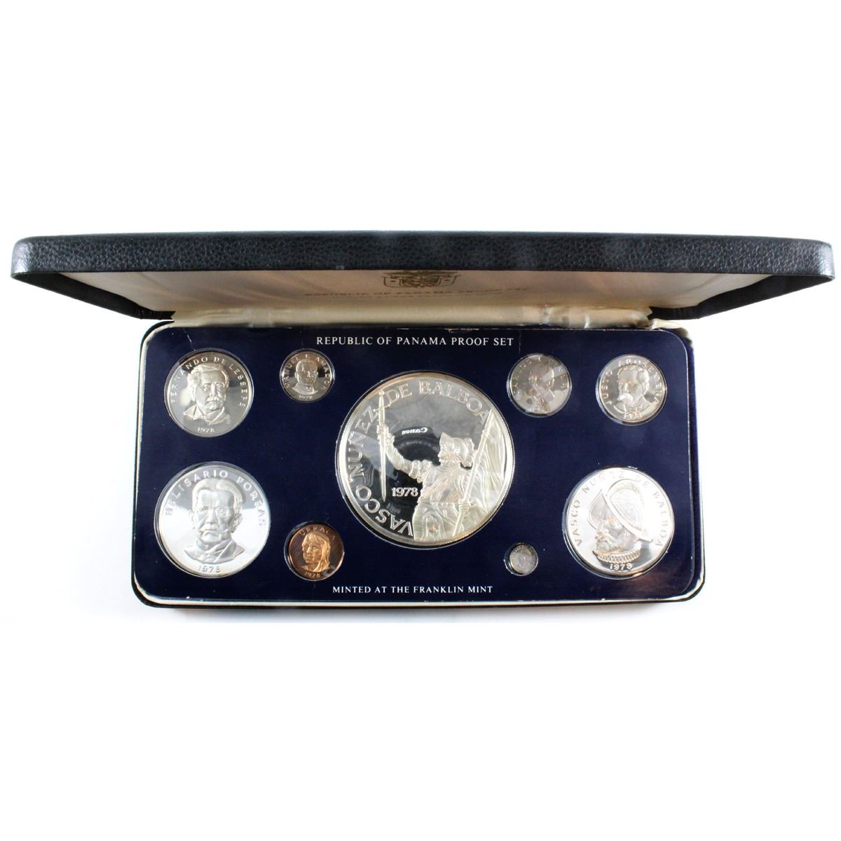 1978 Republic of Panama 75th Anniversary of Independence 9-coin Proof Set with Silver 1, 5 and 20 Balboa coins. This was produced by the Franklin Mint and comes with all the original Mint packaging and COA. Buyers Premium will be added on all items as per our terms of sale. We accept Paypal, Credit Card, E-Transfer Payments, Cheque or Money Orders (there is an additional 3% fee for using Paypal or Credit Card). All invoices will be emailed immediately following the auction, please contact us if you would like to pay by credit card or receive a new revised lower total for mailing in payment or sending an e-transfer (3% discount). All Items Are Sold "AS IS", no returns