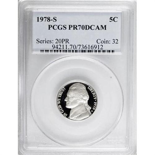 <B>1978-S 5C PR70 Deep Cameo PCGS.</B></I> PCGS Population (30/0). NGC Census: (2/0). Numismedia Wsl. Price for NGC/PCGS coin in PR70: $550. (#94211)<BR><BR><b>Shipping:</b> Coins & Currency (<a target="_blank" href="http://www.heritageauctions.com/common/shipping.php">view shipping information</a>\)