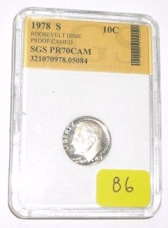 1978-S ROOSEVELT DIME CERTIFIED BY SGS *EXTREMELY RARE PROOF-70 GRADE* SERIAL #321070978.05084!! ***Coin, Currency & All Items Listed in this auction - Grades, Conditions and Values are not Safe Deposit Coins LLC Responsibilty. Grades, Condition and Values are determined by Consigner(s) & Buyers ONLY***