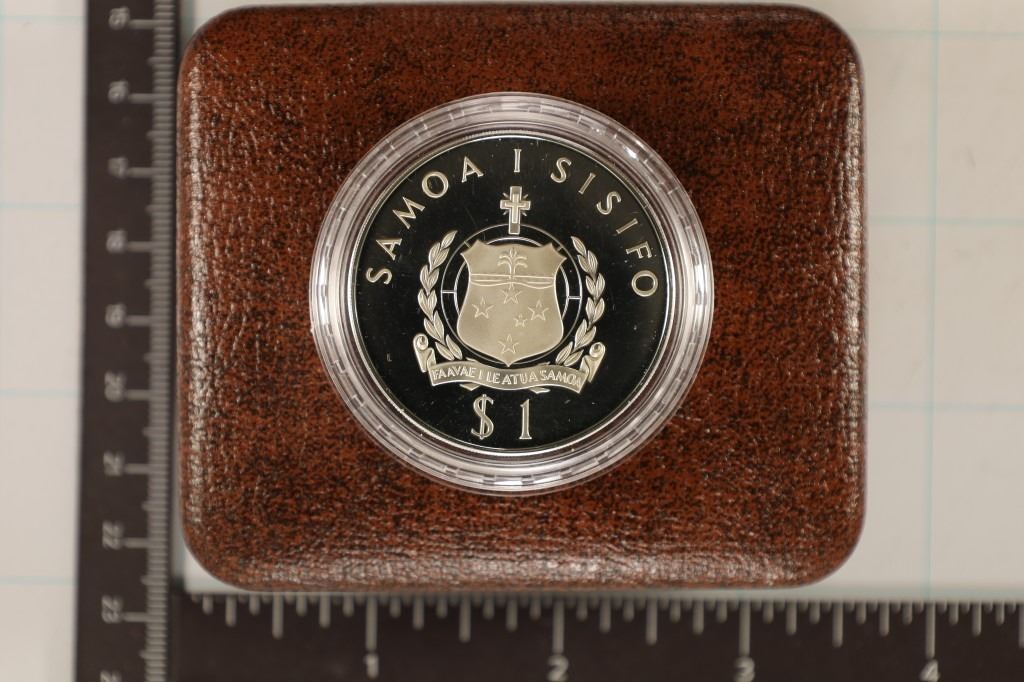 COIN, IN HARD PLASTIC CAPSULE IN ORIGINAL MINT PACKAGING. 30.4 GRAMS OF STERLING SILVER. .9038 OZ. ASW.