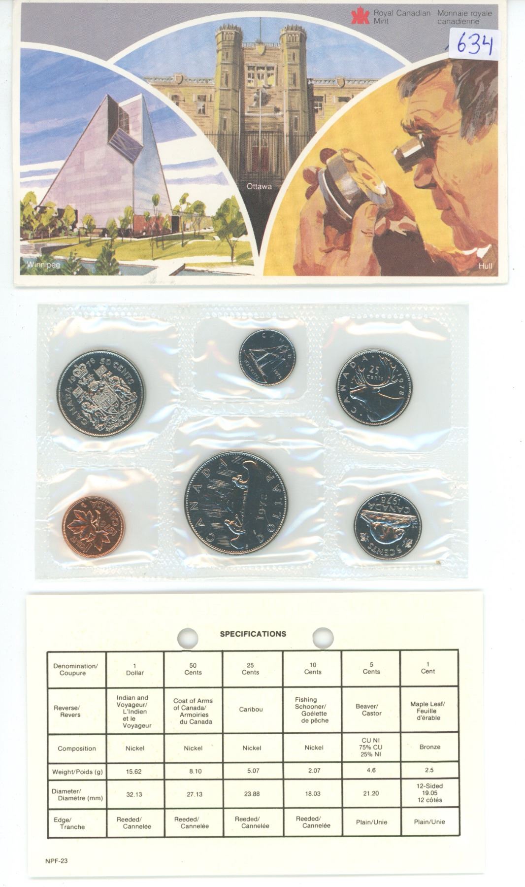 1978 SB Proof Like Set. 6-coin set as issued by the Royal Canadian Mint. The 50 Cents has Square Beads.